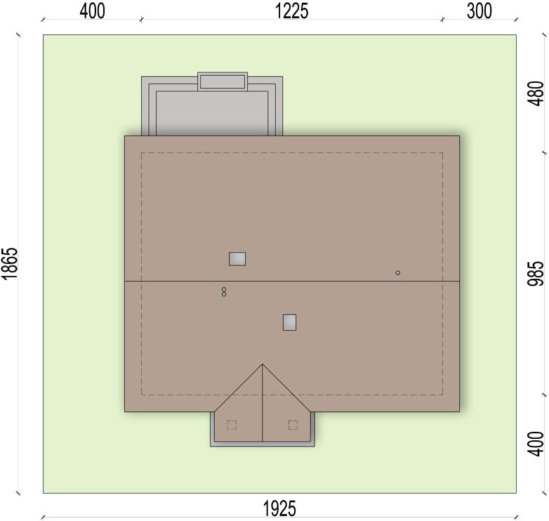 Graficzne opracowanie rzutów poglądowych widocznych na karcie projektu zostało wykonane przez Extradom.pl. Prezentowane przez Extradom.pl wizualizacje wykonane zostały przez autora projektu i należy poczytywać je jedynie za przykład i propozycję wykończenia, wizję architektoniczną autora projektu. Ostateczne wykończenie budynku może nastąpić na wiele sposobów. Szczegółowe rozwiązania zastosowane w oferowanej dokumentacji - w tym również ilość, lokalizacje i wygląd okien, drzwi, kominów - mogą w niewielkim stopniu różnić się od prezentowanej wizualizacji budynku.