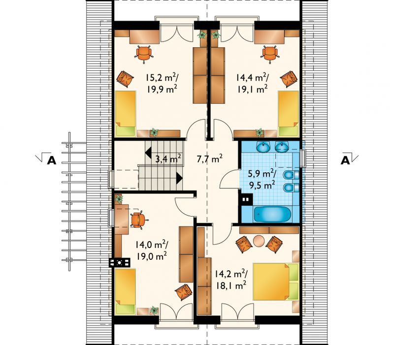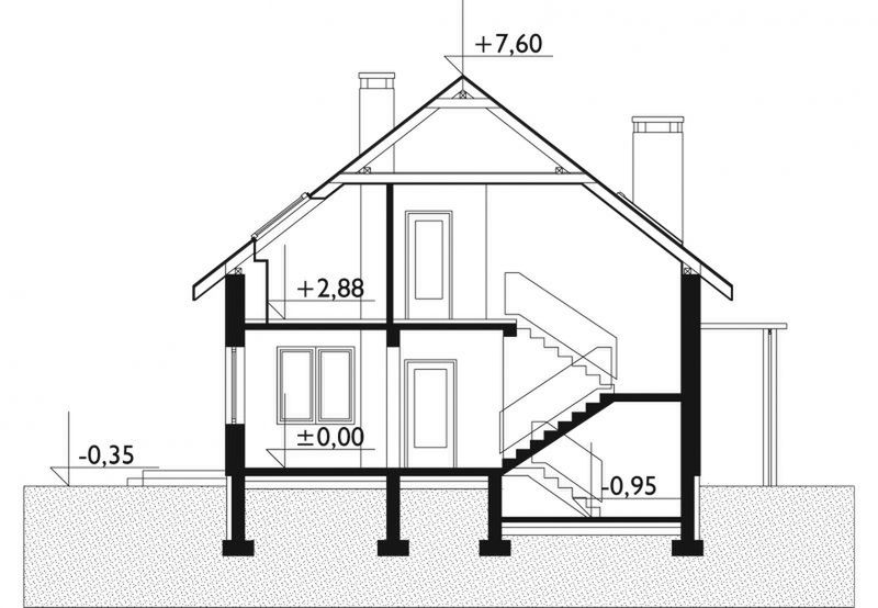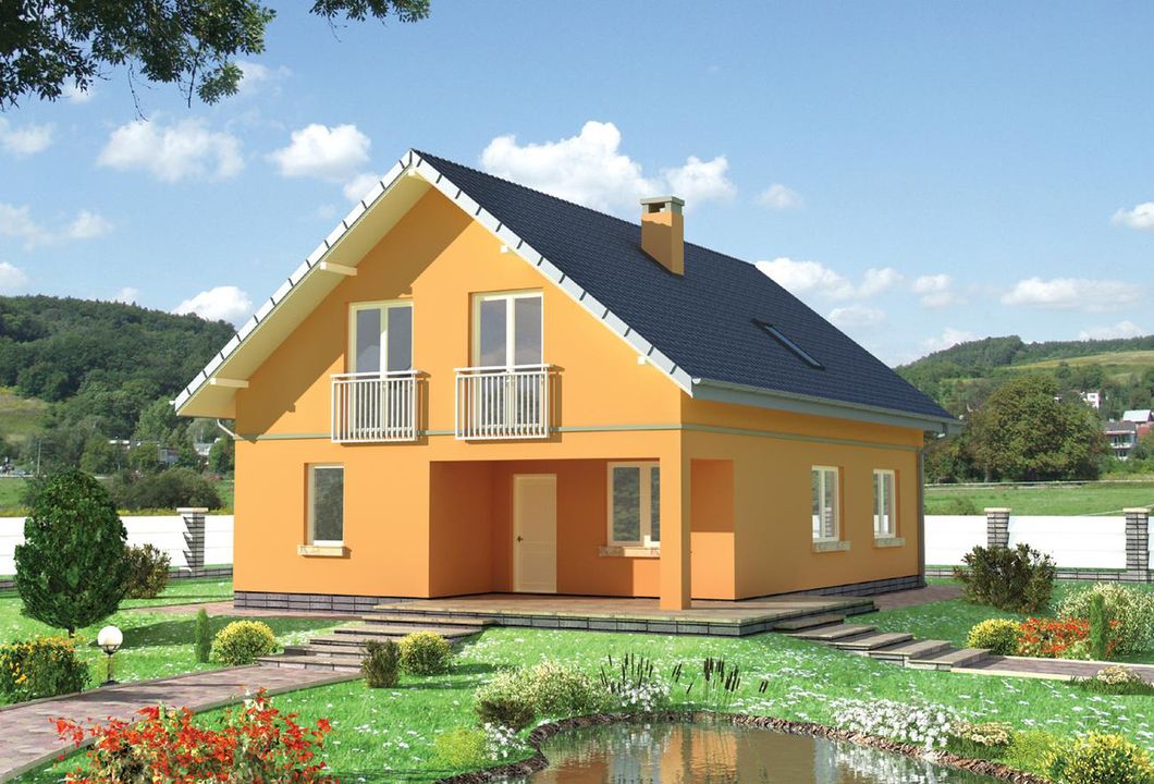 Graficzne opracowanie rzutów poglądowych widocznych na karcie projektu zostało wykonane przez Extradom.pl. Prezentowane przez Extradom.pl wizualizacje wykonane zostały przez autora projektu i należy poczytywać je jedynie za przykład i propozycję wykończenia, wizję architektoniczną autora projektu. Ostateczne wykończenie budynku może nastąpić na wiele sposobów. Szczegółowe rozwiązania zastosowane w oferowanej dokumentacji - w tym również ilość, lokalizacje i wygląd okien, drzwi, kominów - mogą w niewielkim stopniu różnić się od prezentowanej wizualizacji budynku.