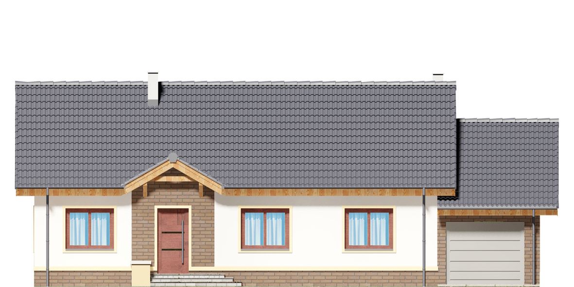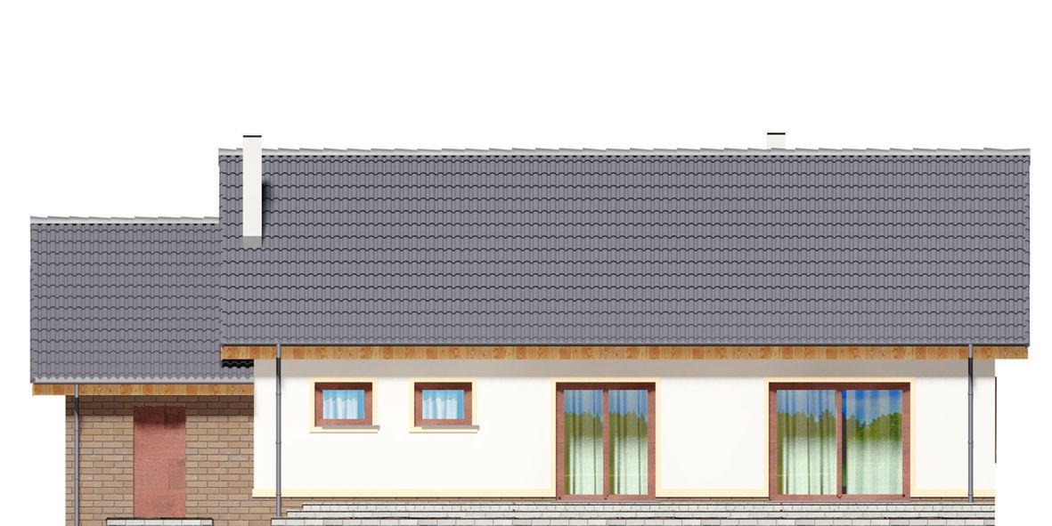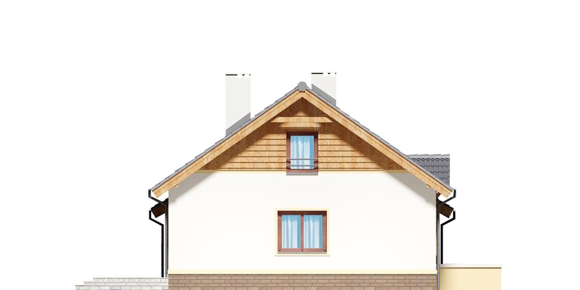 Graficzne opracowanie rzutów poglądowych widocznych na karcie projektu zostało wykonane przez Extradom.pl. Prezentowane przez Extradom.pl wizualizacje wykonane zostały przez autora projektu i należy poczytywać je jedynie za przykład i propozycję wykończenia, wizję architektoniczną autora projektu. Ostateczne wykończenie budynku może nastąpić na wiele sposobów. Szczegółowe rozwiązania zastosowane w oferowanej dokumentacji - w tym również ilość, lokalizacje i wygląd okien, drzwi, kominów - mogą w niewielkim stopniu różnić się od prezentowanej wizualizacji budynku.