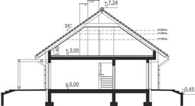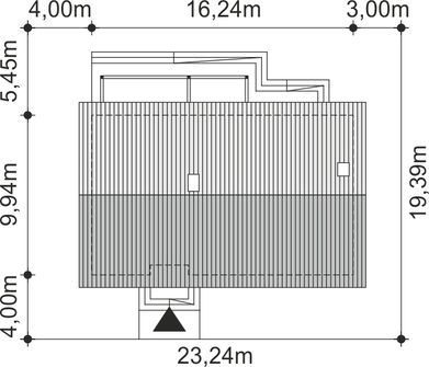 Graficzne opracowanie rzutów poglądowych widocznych na karcie projektu zostało wykonane przez Extradom.pl. Prezentowane przez Extradom.pl wizualizacje wykonane zostały przez autora projektu i należy poczytywać je jedynie za przykład i propozycję wykończenia, wizję architektoniczną autora projektu. Ostateczne wykończenie budynku może nastąpić na wiele sposobów. Szczegółowe rozwiązania zastosowane w oferowanej dokumentacji - w tym również ilość, lokalizacje i wygląd okien, drzwi, kominów - mogą w niewielkim stopniu różnić się od prezentowanej wizualizacji budynku.