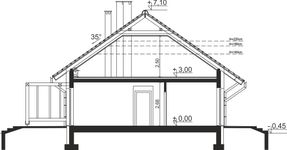 Graficzne opracowanie rzutów poglądowych widocznych na karcie projektu zostało wykonane przez Extradom.pl. Prezentowane przez Extradom.pl wizualizacje wykonane zostały przez autora projektu i należy poczytywać je jedynie za przykład i propozycję wykończenia, wizję architektoniczną autora projektu. Ostateczne wykończenie budynku może nastąpić na wiele sposobów. Szczegółowe rozwiązania zastosowane w oferowanej dokumentacji - w tym również ilość, lokalizacje i wygląd okien, drzwi, kominów - mogą w niewielkim stopniu różnić się od prezentowanej wizualizacji budynku.