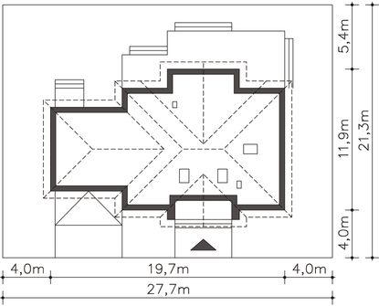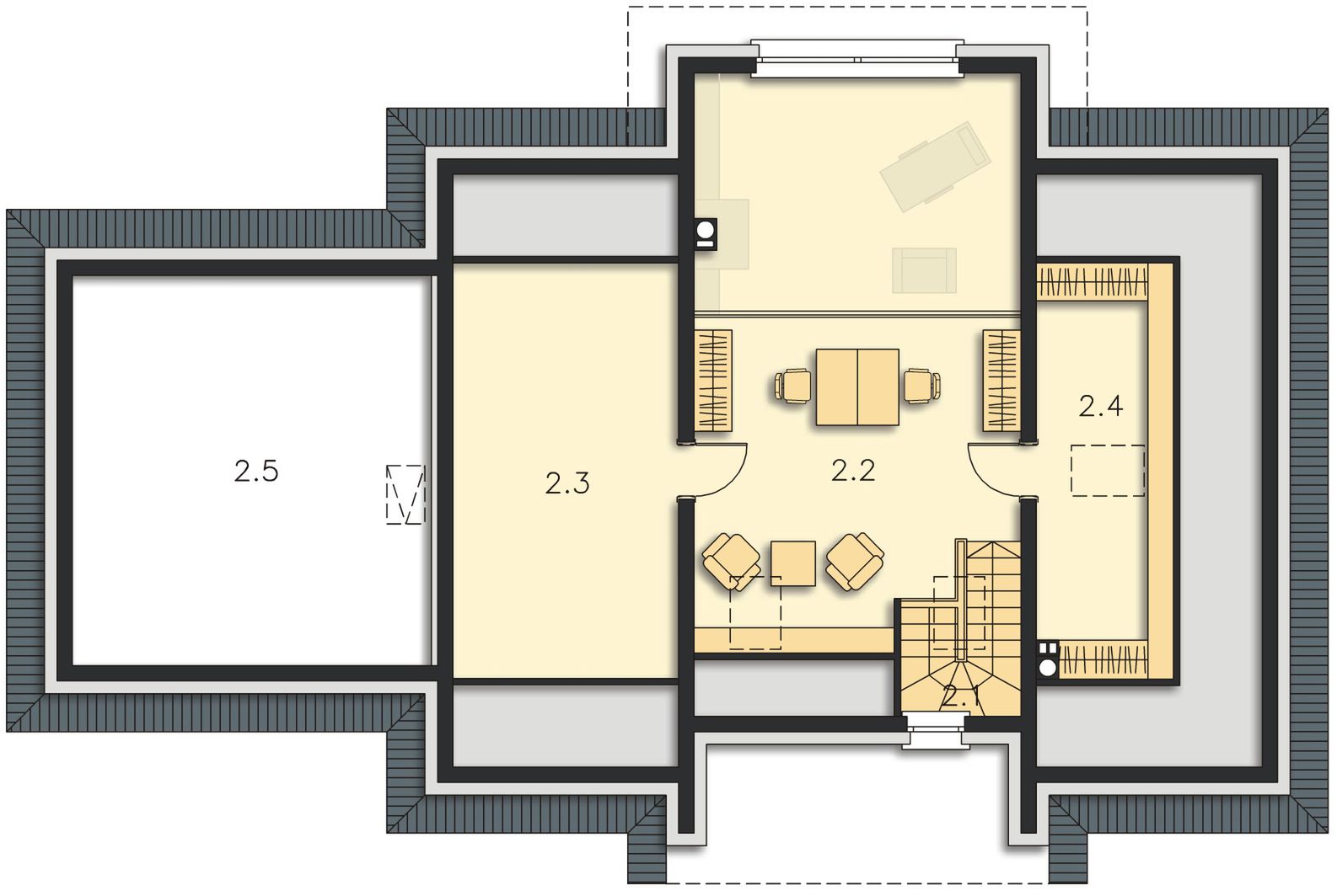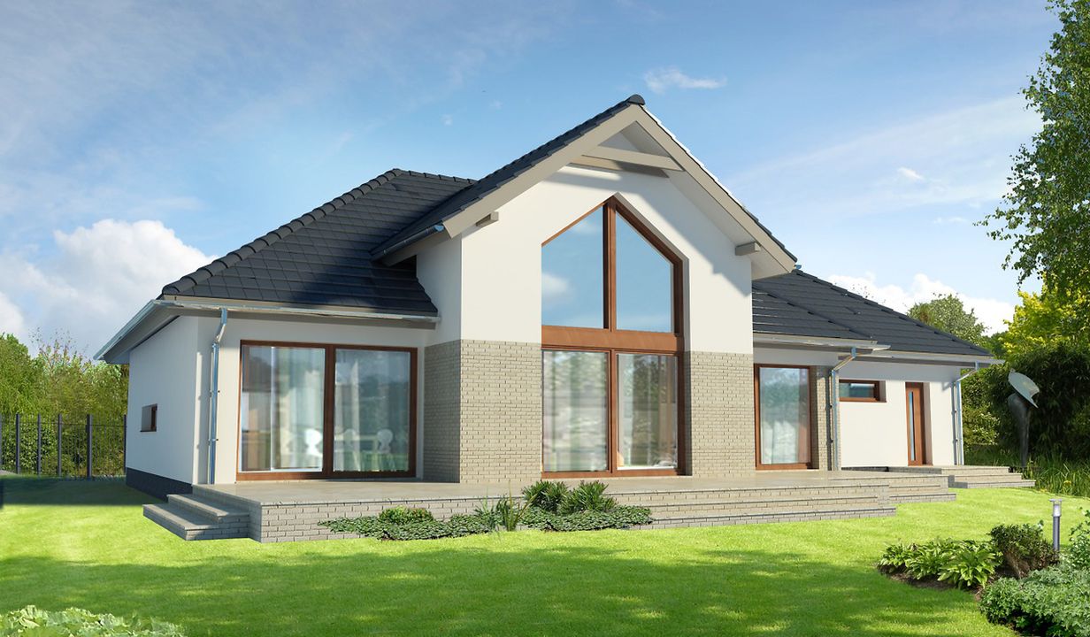 Graficzne opracowanie rzutów poglądowych widocznych na karcie projektu zostało wykonane przez Extradom.pl. Prezentowane przez Extradom.pl wizualizacje wykonane zostały przez autora projektu i należy poczytywać je jedynie za przykład i propozycję wykończenia, wizję architektoniczną autora projektu. Ostateczne wykończenie budynku może nastąpić na wiele sposobów. Szczegółowe rozwiązania zastosowane w oferowanej dokumentacji - w tym również ilość, lokalizacje i wygląd okien, drzwi, kominów - mogą w niewielkim stopniu różnić się od prezentowanej wizualizacji budynku.
