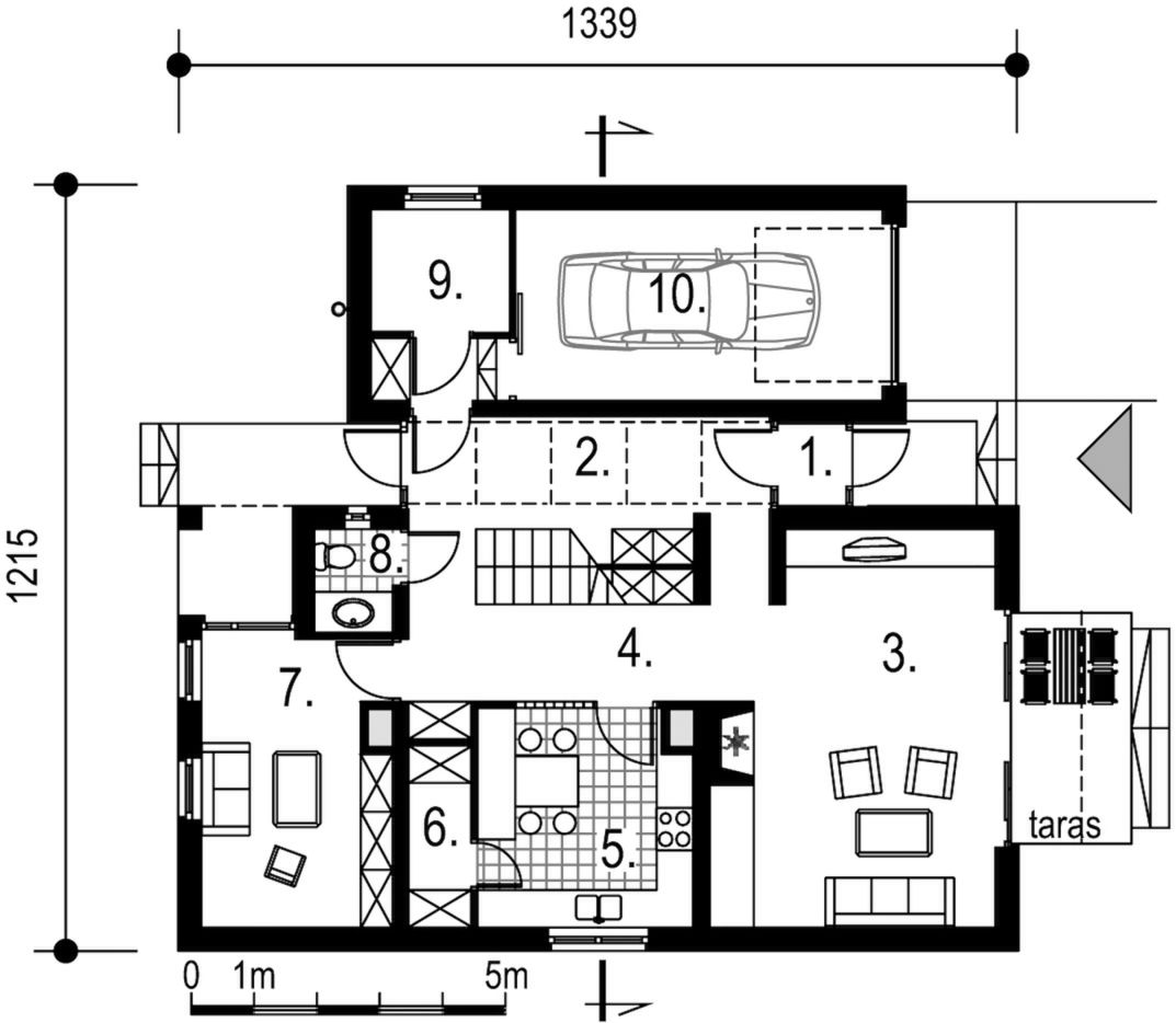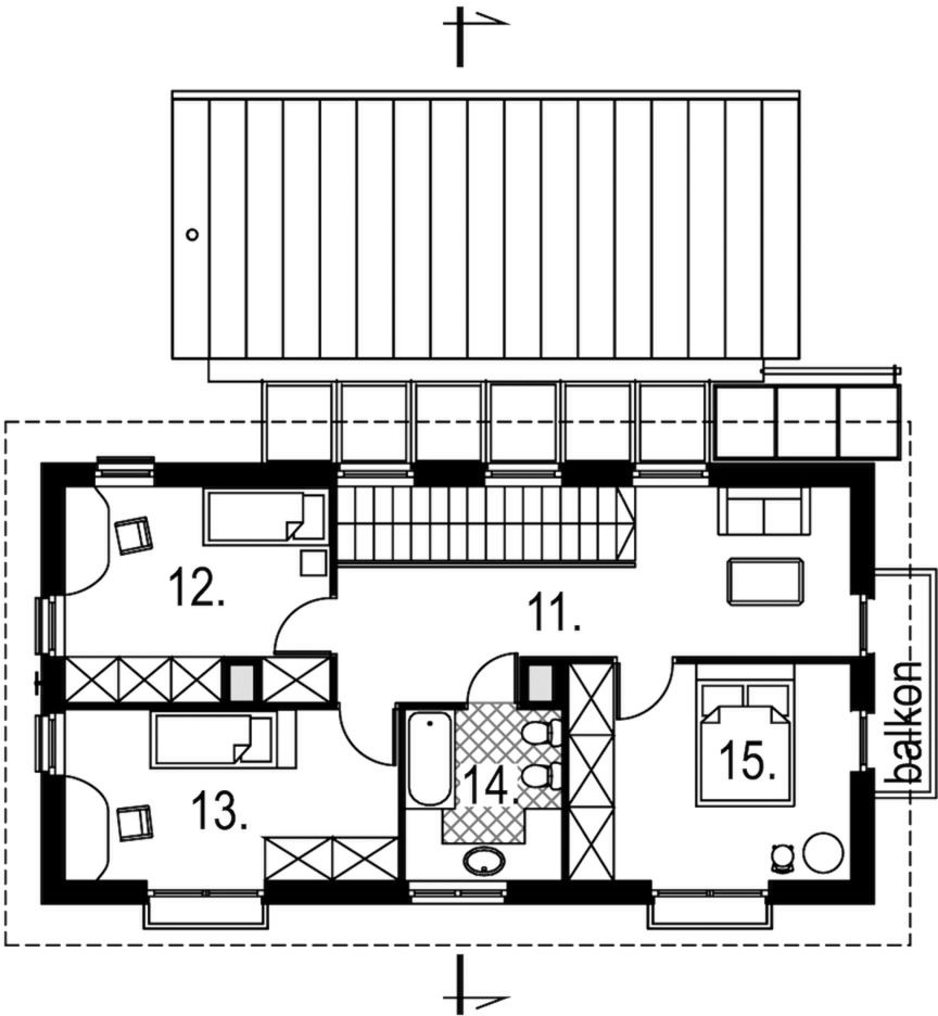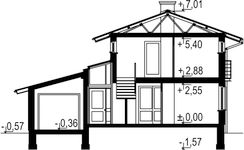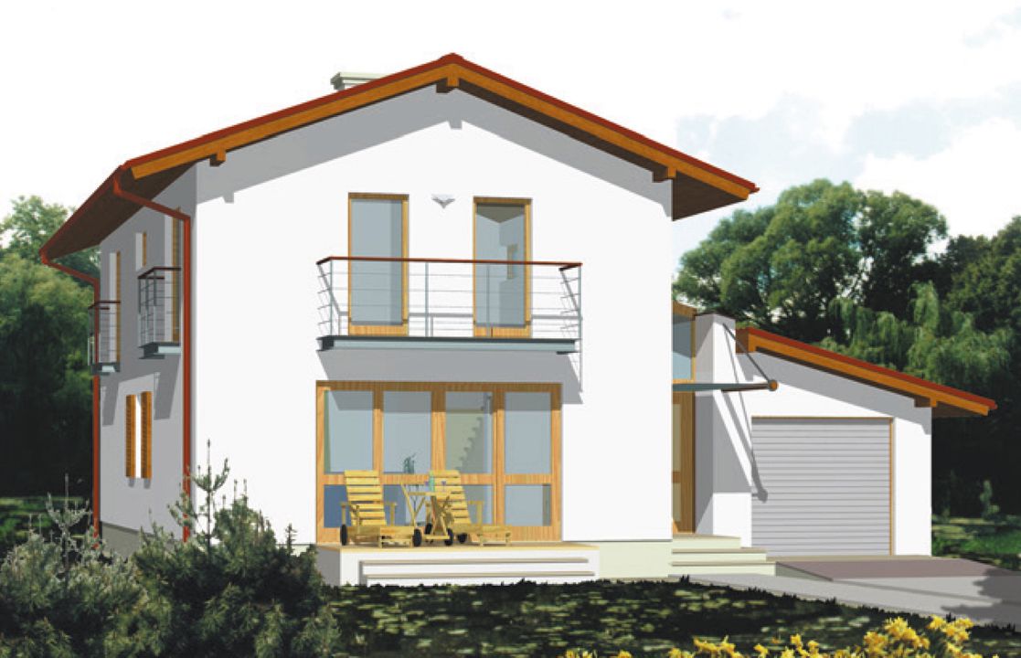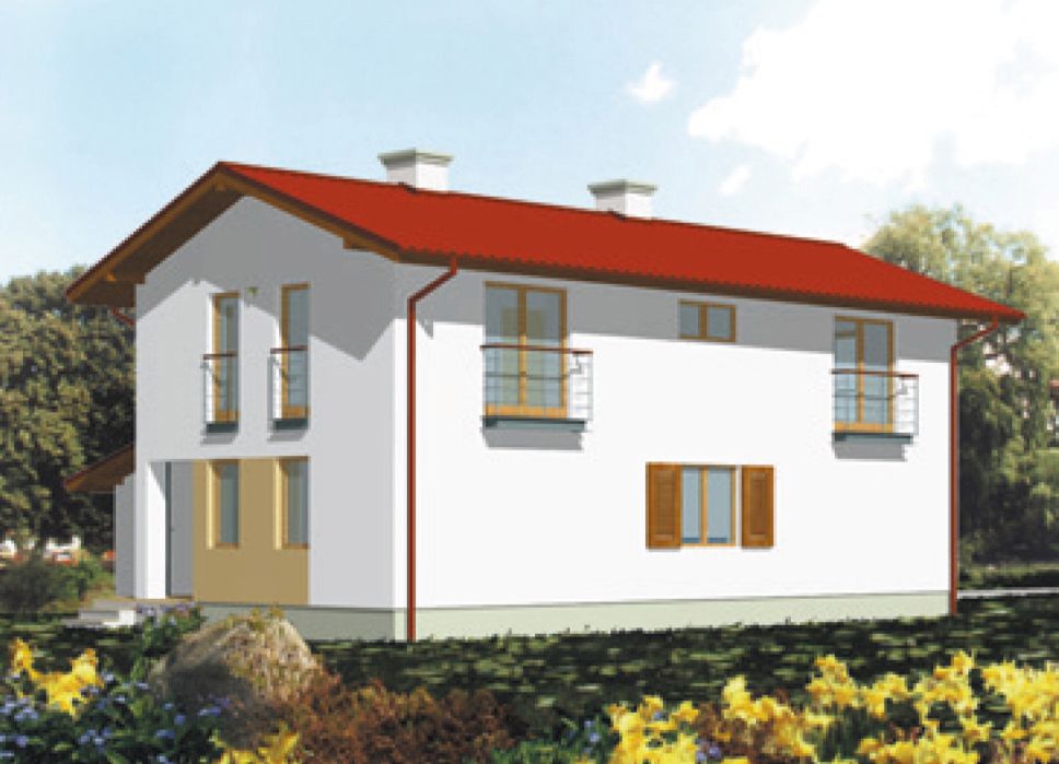 Graficzne opracowanie rzutów poglądowych widocznych na karcie projektu zostało wykonane przez Extradom.pl. Prezentowane przez Extradom.pl wizualizacje wykonane zostały przez autora projektu i należy poczytywać je jedynie za przykład i propozycję wykończenia, wizję architektoniczną autora projektu. Ostateczne wykończenie budynku może nastąpić na wiele sposobów. Szczegółowe rozwiązania zastosowane w oferowanej dokumentacji - w tym również ilość, lokalizacje i wygląd okien, drzwi, kominów - mogą w niewielkim stopniu różnić się od prezentowanej wizualizacji budynku.