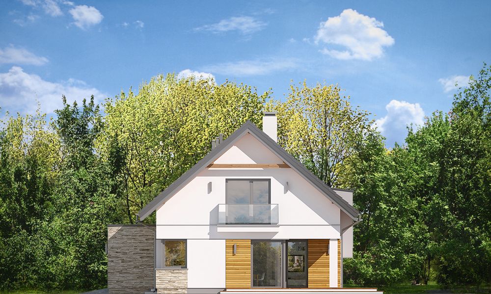 Graficzne opracowanie rzutów poglądowych widocznych na karcie projektu zostało wykonane przez Extradom.pl. Prezentowane przez Extradom.pl wizualizacje wykonane zostały przez autora projektu i należy poczytywać je jedynie za przykład i propozycję wykończenia, wizję architektoniczną autora projektu. Ostateczne wykończenie budynku może nastąpić na wiele sposobów. Szczegółowe rozwiązania zastosowane w oferowanej dokumentacji - w tym również ilość, lokalizacje i wygląd okien, drzwi, kominów - mogą w niewielkim stopniu różnić się od prezentowanej wizualizacji budynku.