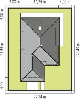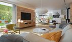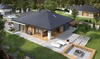 Graficzne opracowanie rzutów poglądowych widocznych na karcie projektu zostało wykonane przez Extradom.pl. Prezentowane przez Extradom.pl wizualizacje wykonane zostały przez autora projektu i należy poczytywać je jedynie za przykład i propozycję wykończenia, wizję architektoniczną autora projektu. Ostateczne wykończenie budynku może nastąpić na wiele sposobów. Szczegółowe rozwiązania zastosowane w oferowanej dokumentacji - w tym również ilość, lokalizacje i wygląd okien, drzwi, kominów - mogą w niewielkim stopniu różnić się od prezentowanej wizualizacji budynku.