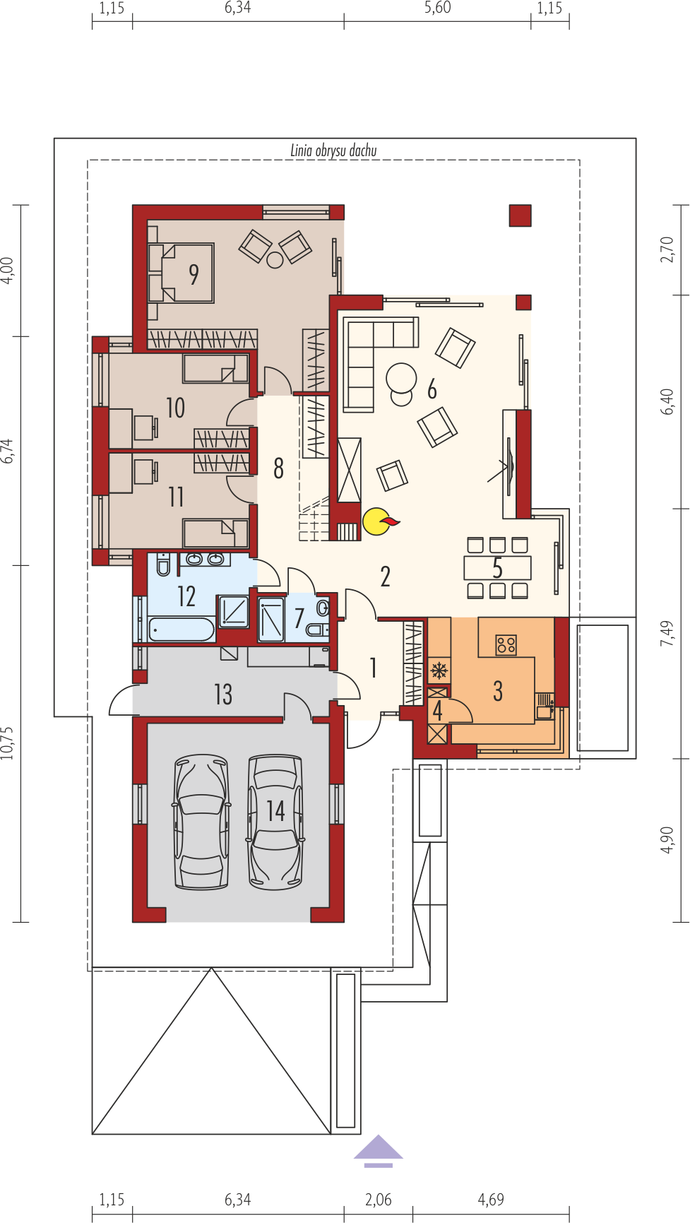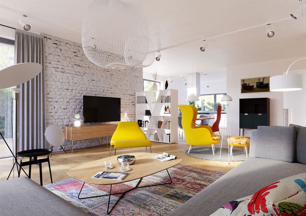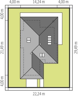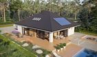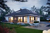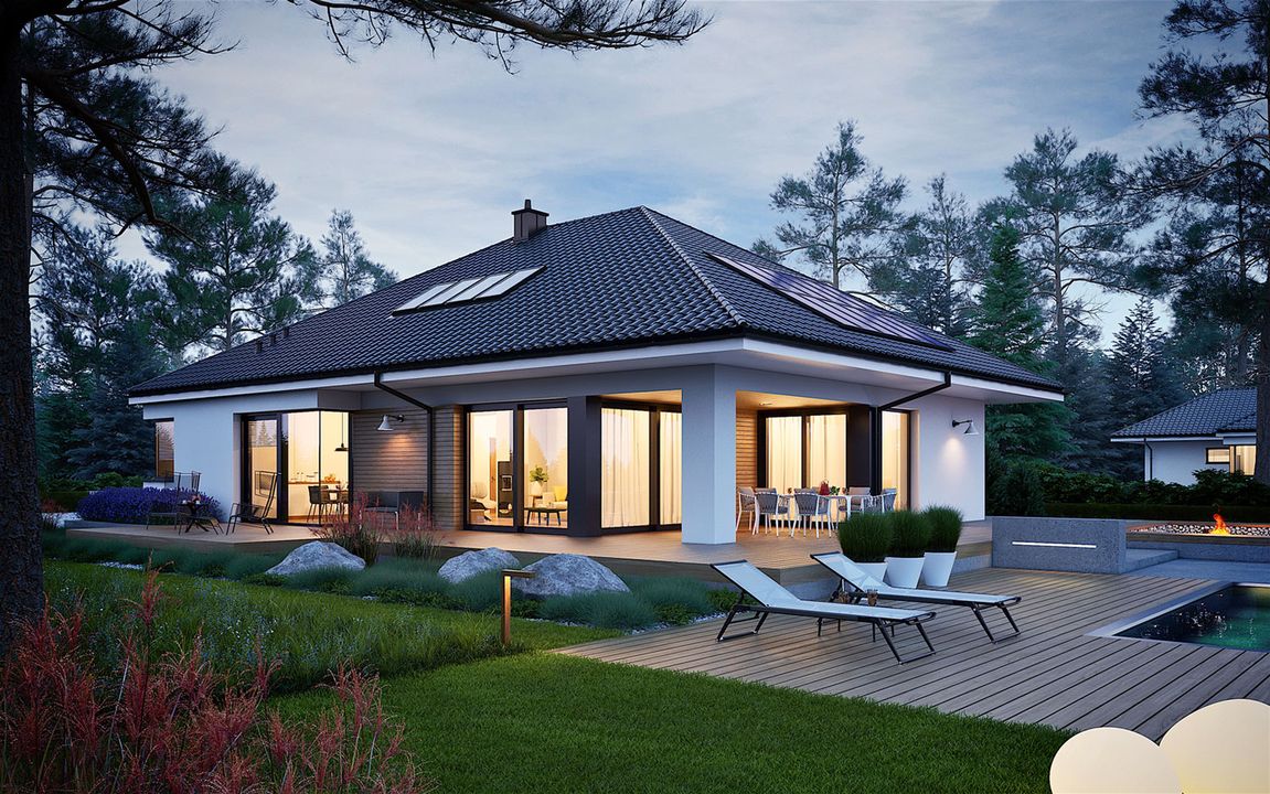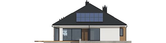 Graficzne opracowanie rzutów poglądowych widocznych na karcie projektu zostało wykonane przez Extradom.pl. Prezentowane przez Extradom.pl wizualizacje wykonane zostały przez autora projektu i należy poczytywać je jedynie za przykład i propozycję wykończenia, wizję architektoniczną autora projektu. Ostateczne wykończenie budynku może nastąpić na wiele sposobów. Szczegółowe rozwiązania zastosowane w oferowanej dokumentacji - w tym również ilość, lokalizacje i wygląd okien, drzwi, kominów - mogą w niewielkim stopniu różnić się od prezentowanej wizualizacji budynku.