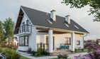 Graficzne opracowanie rzutów poglądowych widocznych na karcie projektu zostało wykonane przez Extradom.pl. Prezentowane przez Extradom.pl wizualizacje wykonane zostały przez autora projektu i należy poczytywać je jedynie za przykład i propozycję wykończenia, wizję architektoniczną autora projektu. Ostateczne wykończenie budynku może nastąpić na wiele sposobów. Szczegółowe rozwiązania zastosowane w oferowanej dokumentacji - w tym również ilość, lokalizacje i wygląd okien, drzwi, kominów - mogą w niewielkim stopniu różnić się od prezentowanej wizualizacji budynku.