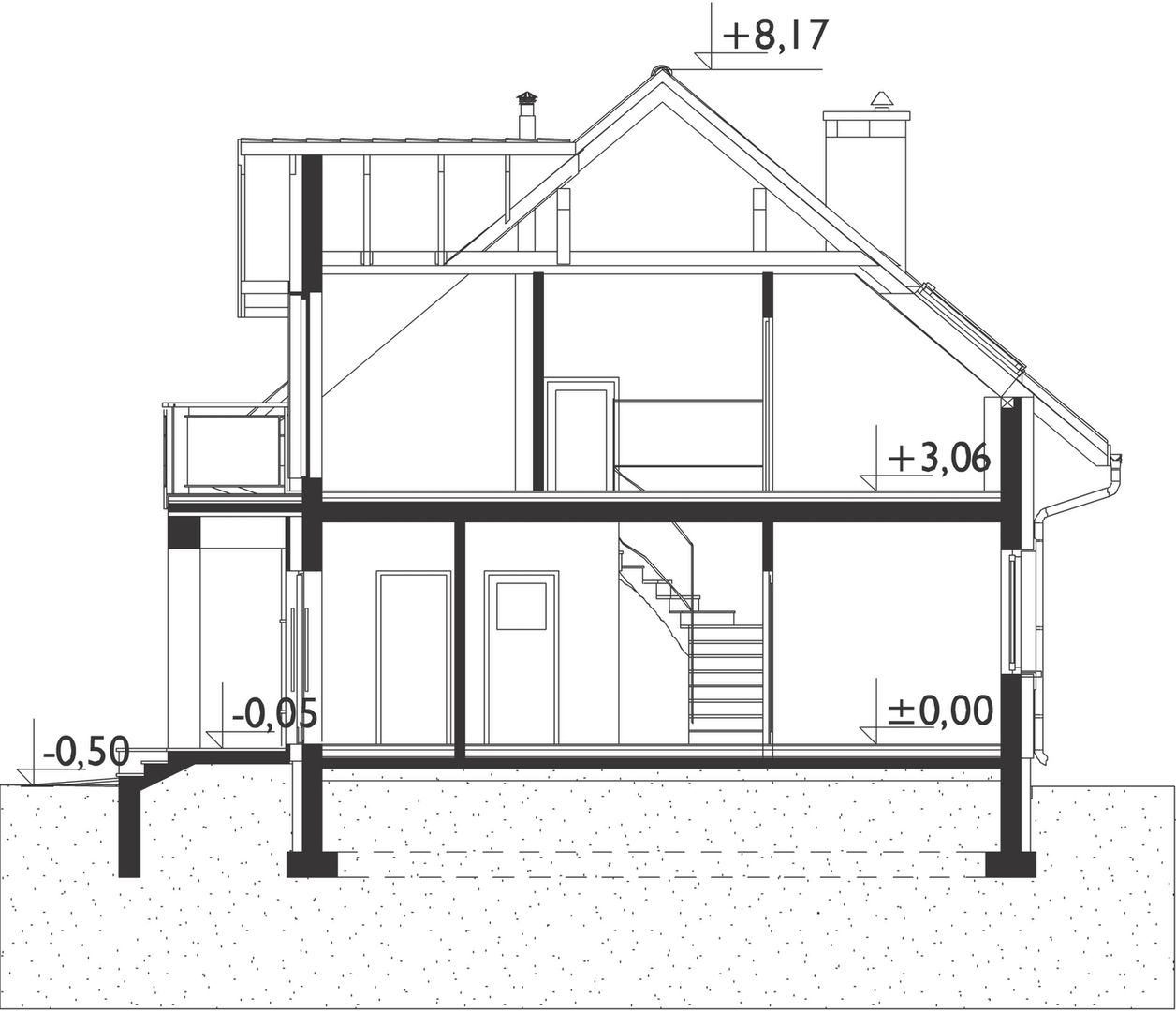 Wersja technologiczna: murowana - ceramika. Strop: Vector firmy Konbet Poznań. Typ schodów: płytowe żelbetowe. Konstrukcja dachu: drewniana płatwiowa. Typ ogrzewania: Kocioł na gaz. Dostępna wersja z pompą ciepła: Tak. Ściany zewnętrzne: 24 cm keramzyt. Ściany wewnętrzne: 24 cm keramzyt. Ściany wewnętrzne działowe: 10 cm keramzyt.
