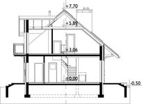 Graficzne opracowanie rzutów poglądowych widocznych na karcie projektu zostało wykonane przez Extradom.pl. Prezentowane przez Extradom.pl wizualizacje wykonane zostały przez autora projektu i należy poczytywać je jedynie za przykład i propozycję wykończenia, wizję architektoniczną autora projektu. Ostateczne wykończenie budynku może nastąpić na wiele sposobów. Szczegółowe rozwiązania zastosowane w oferowanej dokumentacji - w tym również ilość, lokalizacje i wygląd okien, drzwi, kominów - mogą w niewielkim stopniu różnić się od prezentowanej wizualizacji budynku.