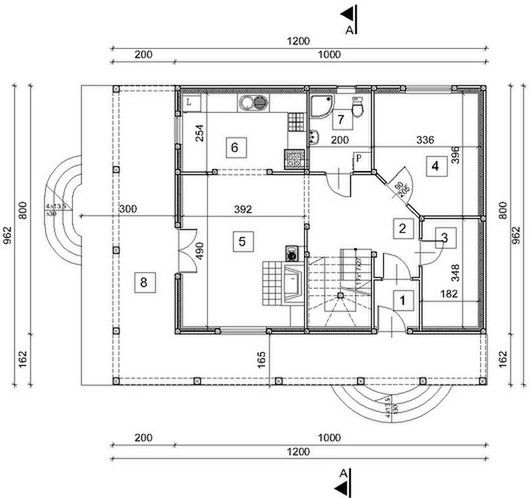 ściany zewnętrzne - bal gr.8cm + wełna min. od wewnątrz 12cm. ściany wewnętrzne - bal gr. 8cm. strop - belkowy drewniany z podsufitką. konstrukcja dachu - płatwiowo-jętkowa. minimalne wymiary dzialki - 19,0m x 15,0m.