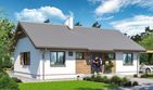 Graficzne opracowanie rzutów poglądowych widocznych na karcie projektu zostało wykonane przez Extradom.pl. Prezentowane przez Extradom.pl wizualizacje wykonane zostały przez autora projektu i należy poczytywać je jedynie za przykład i propozycję wykończenia, wizję architektoniczną autora projektu. Ostateczne wykończenie budynku może nastąpić na wiele sposobów. Szczegółowe rozwiązania zastosowane w oferowanej dokumentacji - w tym również ilość, lokalizacje i wygląd okien, drzwi, kominów - mogą w niewielkim stopniu różnić się od prezentowanej wizualizacji budynku.