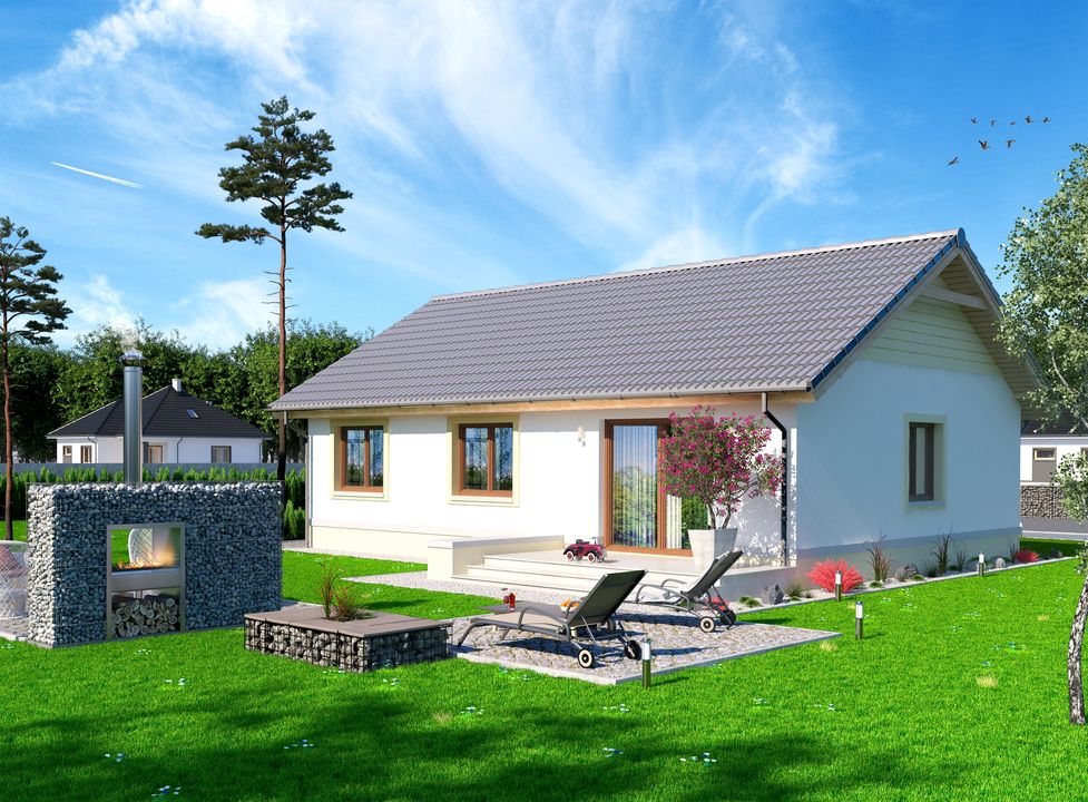 Projekt Tebe WOE1021 wybraliśmy, ponieważ jest to mały, prosty i wydawało nam się, że tani w budowie, jak i w eksploatacji dom parterowy. Zdecydowałem się na budowę go na podstawie konstrukcji szkieletowej ze stali. Dzięki temu rozwiązaniu budowa trwała zaledwie pięć miesięcy i już w grudniu wprowadziliśmy się do naszego nowego domu. W całym domu zamontowaliśmy ogrzewanie podłogowe, z którego jesteśmy zadowoleni. Mamy piec dwufunkcyjny na propan i miesięczne rachunki (razem z ciepłą wodą) nie przekraczają 400zł. Taka kwota to naprawdę nie dużo, podobnie płaciłem za rachunki w mniejszym mieszkaniu, więc nie pozostaje nic innego, jak cieszyć się niskimi kosztami. Oprócz rezygnacji z komina (mamy obieg zamknięty) żadnych innych zmian nie wprowadzaliśmy do projektu domu. Od początku szukaliśmy domu z otwartym na kuchnię salonem. Taka przestrzeń zapewnia swobodę codziennego użytku, a także możliwość organizowania różnego rodzaju przyjęć. Układ pomieszczeń zaproponowany przez projektantów Tebe WOE1021 jest bardzo dobrze przemyślany. Świetnie sprawdza się rozdział na część dziennego użytkowania i tę sypialnianą - zawsze możemy zachować pełną intymność podczas odwiedzin gości. Póki co, jest nas trójka, ale docelowo dom jest postawiony do zamieszkania na stałe przez cztery osoby. Myślę, że dla takiej ilości osób dom będzie idealny, zarówno pod względem miejsca, jak i kosztów budowy oraz eksploatacji. Całość wnętrza jest świetnie doświetlona. W środku jest jasno i przyjemnie - duże okna w tym projekcie domu to naprawdę dobre rozwiązanie. Nasz taras dopiero zaczyna powstawać. Będzie on wyglądał trochę inaczej niż zakładał to projekt. Przede wszystkim będzie w kształcie litery “L”. Będzie on okalał salon. Będzie można wyjść na taras z salonu (tak jak w projekcie), a jego drugi koniec znajdzie się przy oknie do jadalni. Zdecydowaliśmy się na takie rozwiązanie, ponieważ chcemy go w pełni wykorzystać - chcemy o różnych porach dnia łapać słońce lub cień w zależności od potrzeb. Mam nadzieję, że będzie to dobra decyzja. Za nasz największy sukces przy realizacji domu uznaję czas jego powstania - to tylko pięć miesięcy. Wybór sposobu jego budowy nie był tutaj bez znaczenia. Po pięciu miesiącach od przeprowadzki nie zauważyłem żadnych mankamentów tego domu. Jestem bardzo zadowolony z projektu domu Tebe WOE1021 i mam nadzieję, że taki stan utrzyma się jak najdłużej. Pozdrawiam.