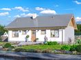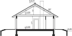 Graficzne opracowanie rzutów poglądowych widocznych na karcie projektu zostało wykonane przez Extradom.pl. Prezentowane przez Extradom.pl wizualizacje wykonane zostały przez autora projektu i należy poczytywać je jedynie za przykład i propozycję wykończenia, wizję architektoniczną autora projektu. Ostateczne wykończenie budynku może nastąpić na wiele sposobów. Szczegółowe rozwiązania zastosowane w oferowanej dokumentacji - w tym również ilość, lokalizacje i wygląd okien, drzwi, kominów - mogą w niewielkim stopniu różnić się od prezentowanej wizualizacji budynku.