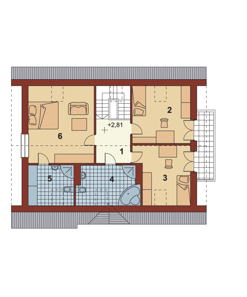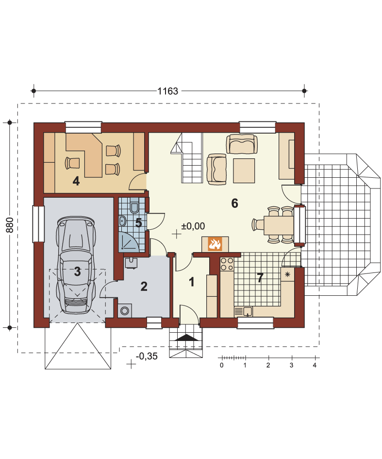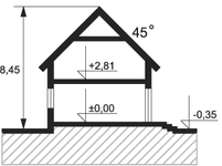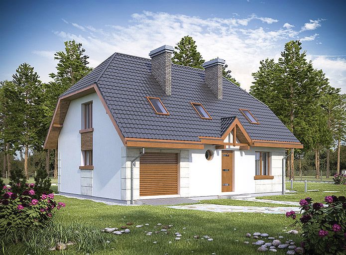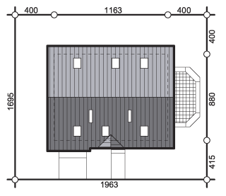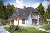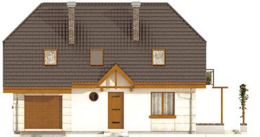 Graficzne opracowanie rzutów poglądowych widocznych na karcie projektu zostało wykonane przez Extradom.pl. Prezentowane przez Extradom.pl wizualizacje wykonane zostały przez autora projektu i należy poczytywać je jedynie za przykład i propozycję wykończenia, wizję architektoniczną autora projektu. Ostateczne wykończenie budynku może nastąpić na wiele sposobów. Szczegółowe rozwiązania zastosowane w oferowanej dokumentacji - w tym również ilość, lokalizacje i wygląd okien, drzwi, kominów - mogą w niewielkim stopniu różnić się od prezentowanej wizualizacji budynku.