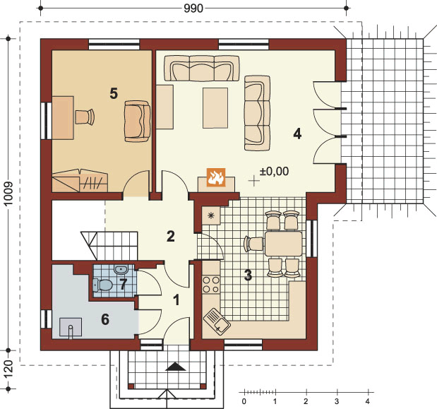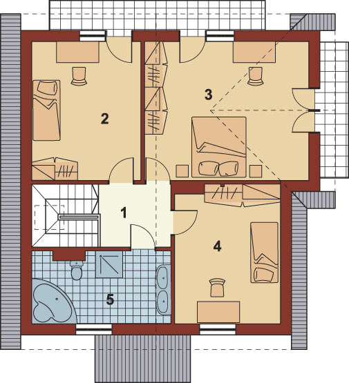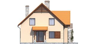 Graficzne opracowanie rzutów poglądowych widocznych na karcie projektu zostało wykonane przez Extradom.pl. Prezentowane przez Extradom.pl wizualizacje wykonane zostały przez autora projektu i należy poczytywać je jedynie za przykład i propozycję wykończenia, wizję architektoniczną autora projektu. Ostateczne wykończenie budynku może nastąpić na wiele sposobów. Szczegółowe rozwiązania zastosowane w oferowanej dokumentacji - w tym również ilość, lokalizacje i wygląd okien, drzwi, kominów - mogą w niewielkim stopniu różnić się od prezentowanej wizualizacji budynku.
