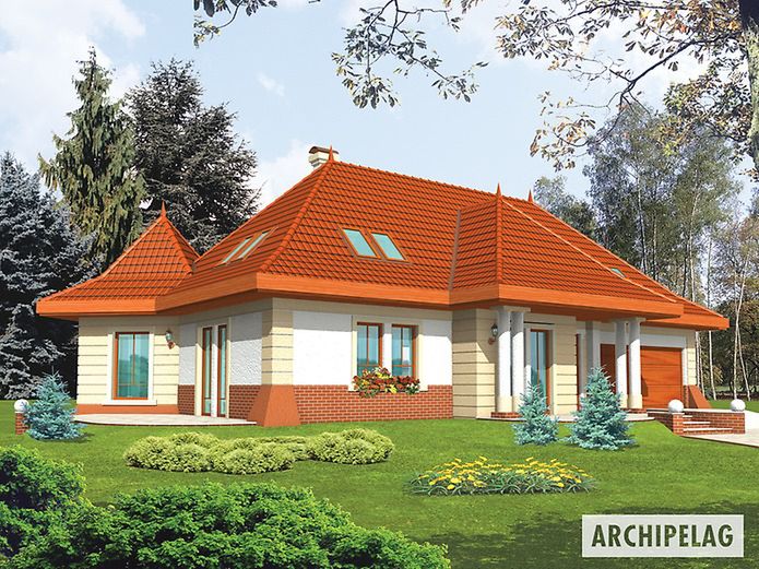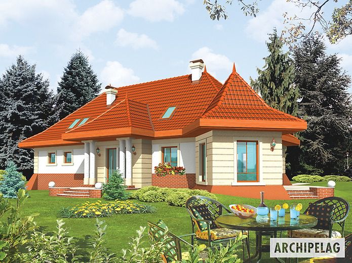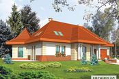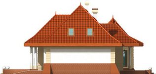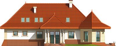 Graficzne opracowanie rzutów poglądowych widocznych na karcie projektu zostało wykonane przez Extradom.pl. Prezentowane przez Extradom.pl wizualizacje wykonane zostały przez autora projektu i należy poczytywać je jedynie za przykład i propozycję wykończenia, wizję architektoniczną autora projektu. Ostateczne wykończenie budynku może nastąpić na wiele sposobów. Szczegółowe rozwiązania zastosowane w oferowanej dokumentacji - w tym również ilość, lokalizacje i wygląd okien, drzwi, kominów - mogą w niewielkim stopniu różnić się od prezentowanej wizualizacji budynku.