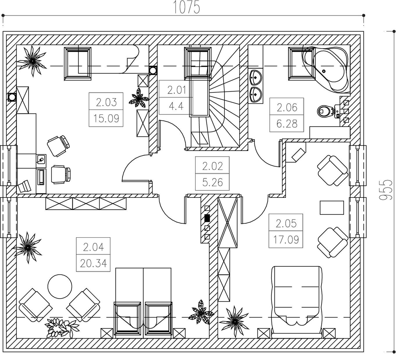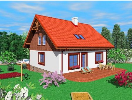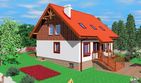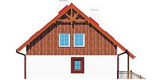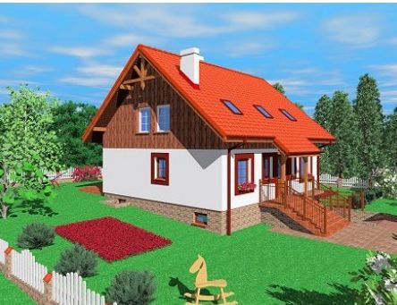 Graficzne opracowanie rzutów poglądowych widocznych na karcie projektu zostało wykonane przez Extradom.pl. Prezentowane przez Extradom.pl wizualizacje wykonane zostały przez autora projektu i należy poczytywać je jedynie za przykład i propozycję wykończenia, wizję architektoniczną autora projektu. Ostateczne wykończenie budynku może nastąpić na wiele sposobów. Szczegółowe rozwiązania zastosowane w oferowanej dokumentacji - w tym również ilość, lokalizacje i wygląd okien, drzwi, kominów - mogą w niewielkim stopniu różnić się od prezentowanej wizualizacji budynku.