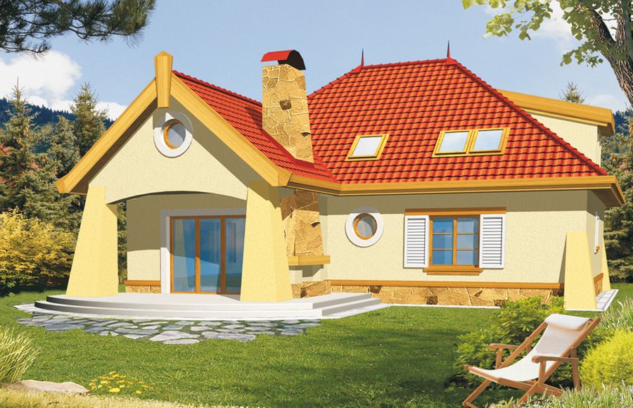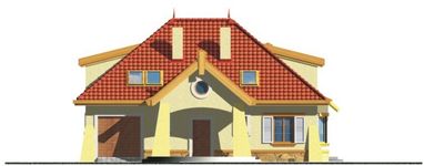 Graficzne opracowanie rzutów poglądowych widocznych na karcie projektu zostało wykonane przez Extradom.pl. Prezentowane przez Extradom.pl wizualizacje wykonane zostały przez autora projektu i należy poczytywać je jedynie za przykład i propozycję wykończenia, wizję architektoniczną autora projektu. Ostateczne wykończenie budynku może nastąpić na wiele sposobów. Szczegółowe rozwiązania zastosowane w oferowanej dokumentacji - w tym również ilość, lokalizacje i wygląd okien, drzwi, kominów - mogą w niewielkim stopniu różnić się od prezentowanej wizualizacji budynku.