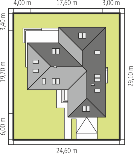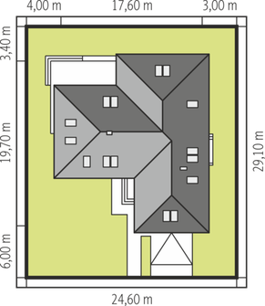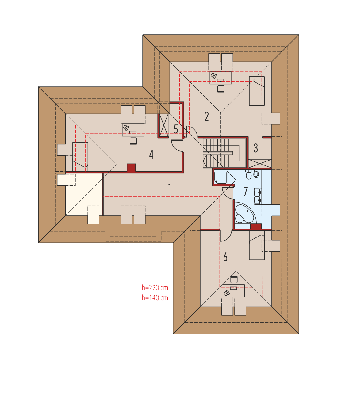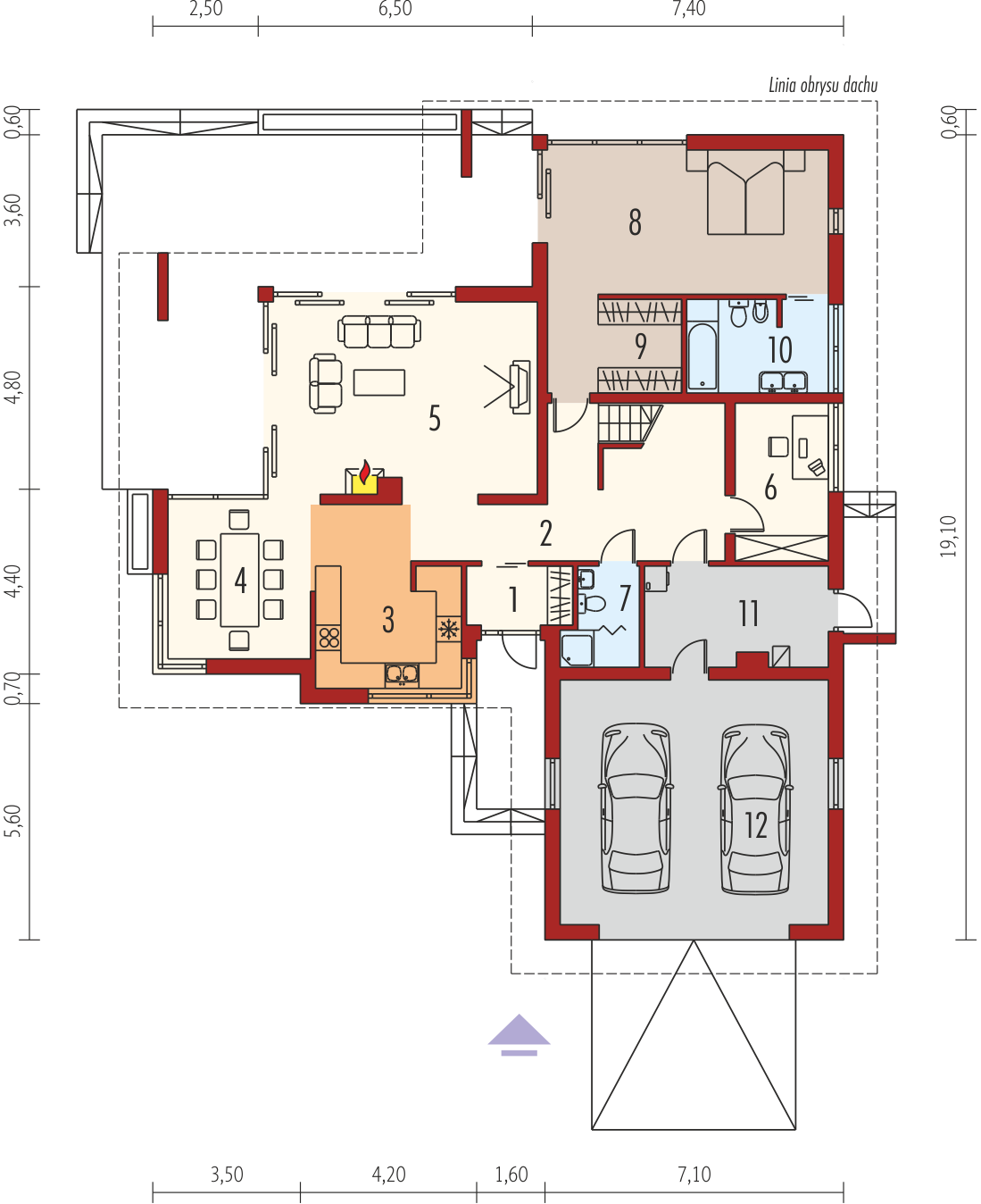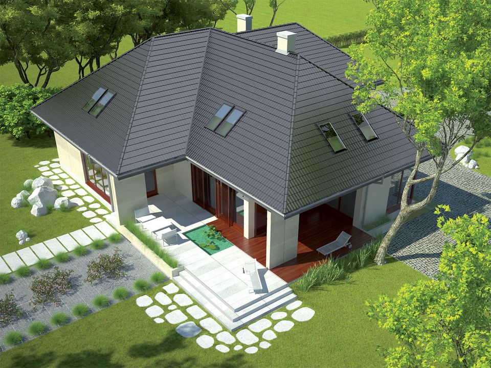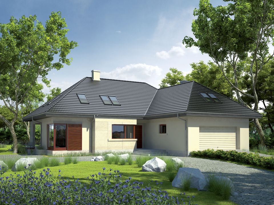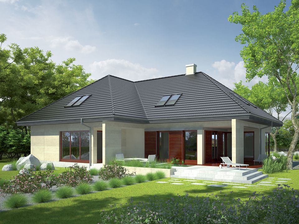 Graficzne opracowanie rzutów poglądowych widocznych na karcie projektu zostało wykonane przez Extradom.pl. Prezentowane przez Extradom.pl wizualizacje wykonane zostały przez autora projektu i należy poczytywać je jedynie za przykład i propozycję wykończenia, wizję architektoniczną autora projektu. Ostateczne wykończenie budynku może nastąpić na wiele sposobów. Szczegółowe rozwiązania zastosowane w oferowanej dokumentacji - w tym również ilość, lokalizacje i wygląd okien, drzwi, kominów - mogą w niewielkim stopniu różnić się od prezentowanej wizualizacji budynku.