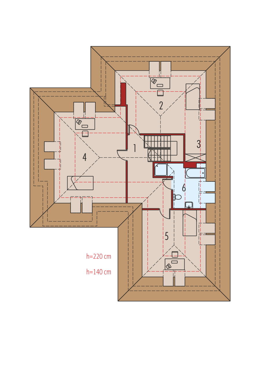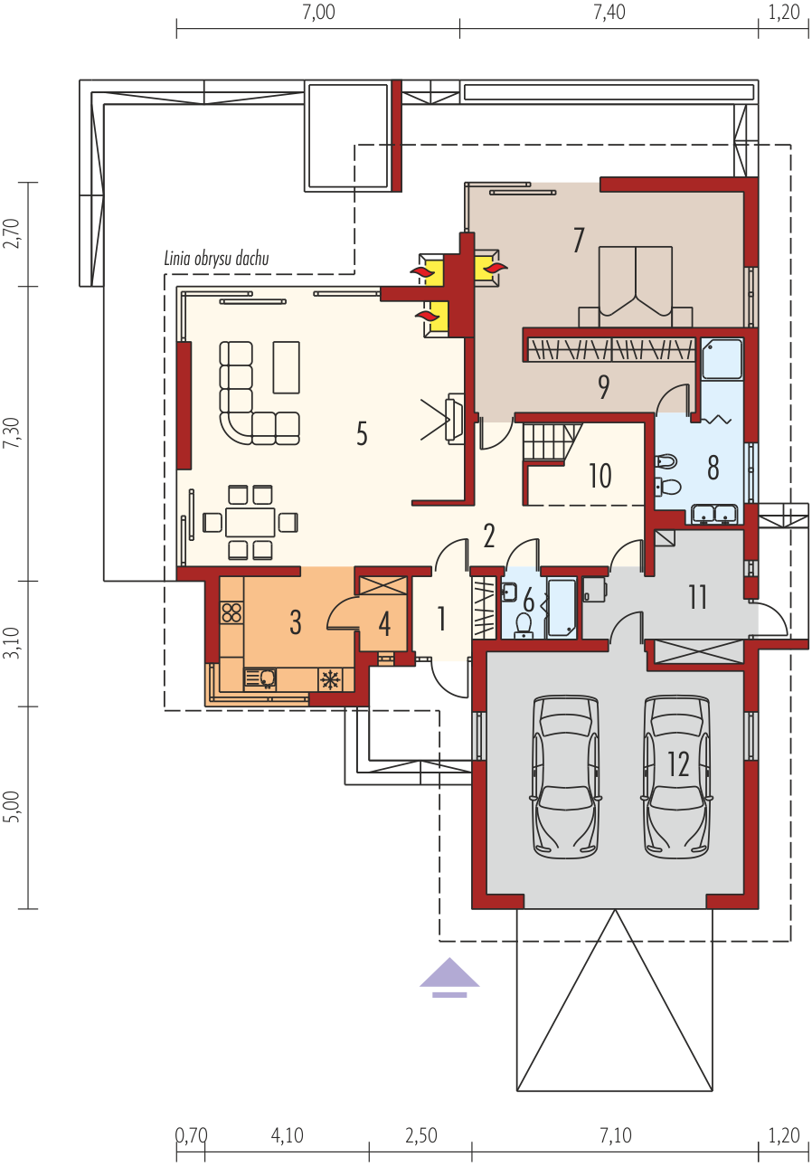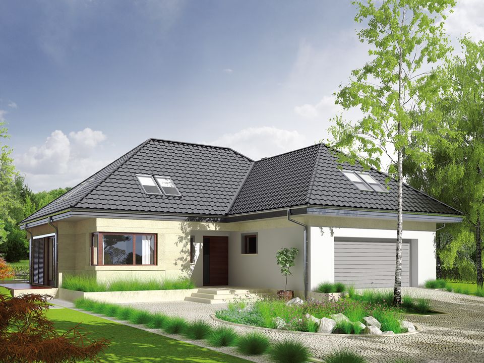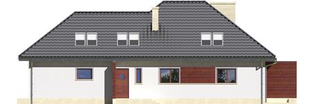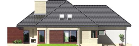 Graficzne opracowanie rzutów poglądowych widocznych na karcie projektu zostało wykonane przez Extradom.pl. Prezentowane przez Extradom.pl wizualizacje wykonane zostały przez autora projektu i należy poczytywać je jedynie za przykład i propozycję wykończenia, wizję architektoniczną autora projektu. Ostateczne wykończenie budynku może nastąpić na wiele sposobów. Szczegółowe rozwiązania zastosowane w oferowanej dokumentacji - w tym również ilość, lokalizacje i wygląd okien, drzwi, kominów - mogą w niewielkim stopniu różnić się od prezentowanej wizualizacji budynku.