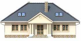 Graficzne opracowanie rzutów poglądowych widocznych na karcie projektu zostało wykonane przez Extradom.pl. Prezentowane przez Extradom.pl wizualizacje wykonane zostały przez autora projektu i należy poczytywać je jedynie za przykład i propozycję wykończenia, wizję architektoniczną autora projektu. Ostateczne wykończenie budynku może nastąpić na wiele sposobów. Szczegółowe rozwiązania zastosowane w oferowanej dokumentacji - w tym również ilość, lokalizacje i wygląd okien, drzwi, kominów - mogą w niewielkim stopniu różnić się od prezentowanej wizualizacji budynku.