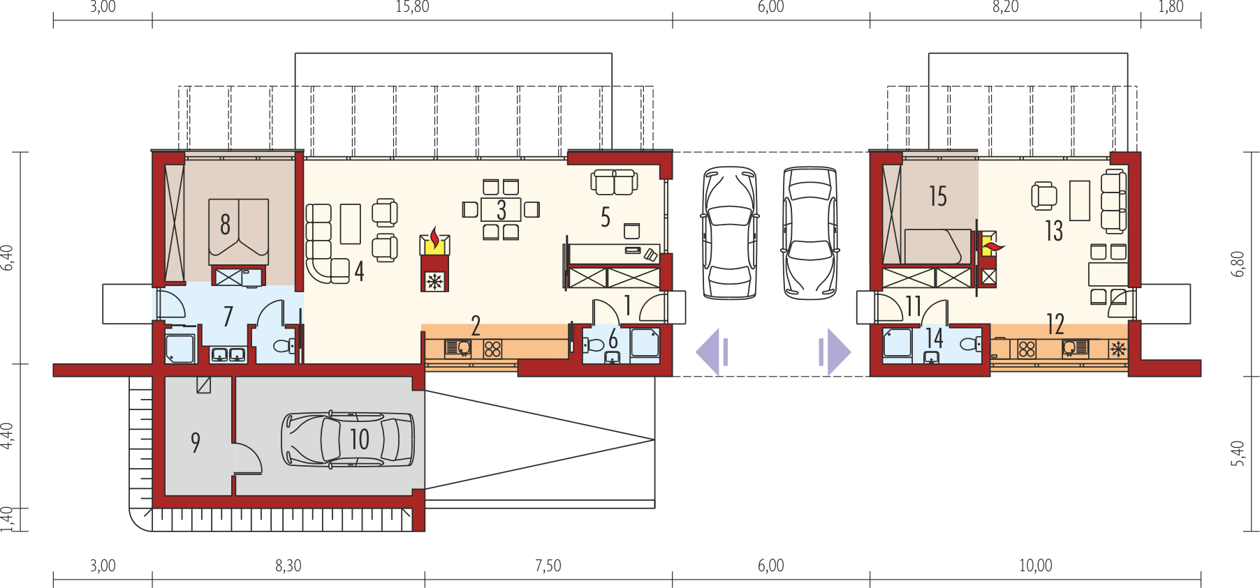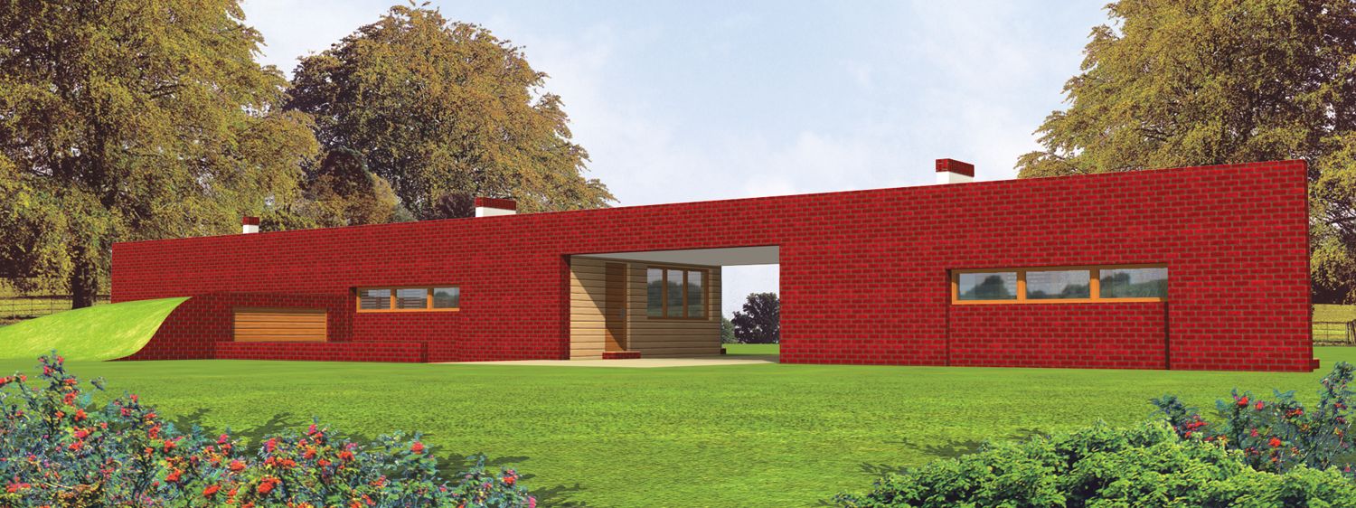 Graficzne opracowanie rzutów poglądowych widocznych na karcie projektu zostało wykonane przez Extradom.pl. Prezentowane przez Extradom.pl wizualizacje wykonane zostały przez autora projektu i należy poczytywać je jedynie za przykład i propozycję wykończenia, wizję architektoniczną autora projektu. Ostateczne wykończenie budynku może nastąpić na wiele sposobów. Szczegółowe rozwiązania zastosowane w oferowanej dokumentacji - w tym również ilość, lokalizacje i wygląd okien, drzwi, kominów - mogą w niewielkim stopniu różnić się od prezentowanej wizualizacji budynku.