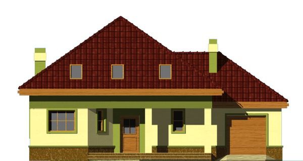 Graficzne opracowanie rzutów poglądowych widocznych na karcie projektu zostało wykonane przez Extradom.pl. Prezentowane przez Extradom.pl wizualizacje wykonane zostały przez autora projektu i należy poczytywać je jedynie za przykład i propozycję wykończenia, wizję architektoniczną autora projektu. Ostateczne wykończenie budynku może nastąpić na wiele sposobów. Szczegółowe rozwiązania zastosowane w oferowanej dokumentacji - w tym również ilość, lokalizacje i wygląd okien, drzwi, kominów - mogą w niewielkim stopniu różnić się od prezentowanej wizualizacji budynku.