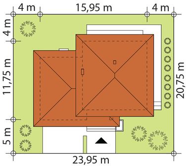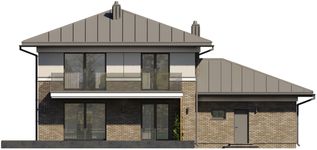 Graficzne opracowanie rzutów poglądowych widocznych na karcie projektu zostało wykonane przez Extradom.pl. Prezentowane przez Extradom.pl wizualizacje wykonane zostały przez autora projektu i należy poczytywać je jedynie za przykład i propozycję wykończenia, wizję architektoniczną autora projektu. Ostateczne wykończenie budynku może nastąpić na wiele sposobów. Szczegółowe rozwiązania zastosowane w oferowanej dokumentacji - w tym również ilość, lokalizacje i wygląd okien, drzwi, kominów - mogą w niewielkim stopniu różnić się od prezentowanej wizualizacji budynku.