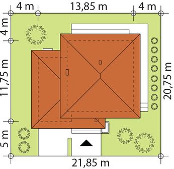 Graficzne opracowanie rzutów poglądowych widocznych na karcie projektu zostało wykonane przez Extradom.pl. Prezentowane przez Extradom.pl wizualizacje wykonane zostały przez autora projektu i należy poczytywać je jedynie za przykład i propozycję wykończenia, wizję architektoniczną autora projektu. Ostateczne wykończenie budynku może nastąpić na wiele sposobów. Szczegółowe rozwiązania zastosowane w oferowanej dokumentacji - w tym również ilość, lokalizacje i wygląd okien, drzwi, kominów - mogą w niewielkim stopniu różnić się od prezentowanej wizualizacji budynku.
