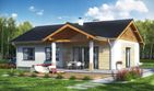 Posadowienie bezpośrednie na zbrojonych ławach i stopach fundamentowych wykonanych z betonu B 20. Ściany fundamentowe: murowane z bloczków betonowych M6. Ściany zewnętrzne, nośne: bloczki gazobetonowe gr. 25 cm na zaprawie systemowej, ciepłochronnej, ocieplony styropianem fasadowym gr. 15 cm. Do ocieplenia budynku zaprojektowano użycie styropianu grafitowego gr. 15 cm, o współczynniku „lambda” nie przekraczającym 0,035 W(mK) i „oporze cieplnym” nie mniejszym niż Rd – 4,0 m2k/W. Zastosowanie materiałów budowlanych (ocieplenie ścian, dachu, podłogi na gruncie, okien i drzwi zewnętrznych) użytych w projekcie odpowiada nowym wymaganiom obowiązującym od stycznia 2021 roku (WT2021). Ściany wewnętrzne działowe: bloczki gazobetonowe gr. 12 cm. Strop z płyt GK na ruszcie stalowym, podwieszonym do dolnych pasów drewnianych wiązarów dachowych. Konstrukcja dachu: drewniana, drewno klasy C24, więźba dachu głównego w formie wiązarów opartych na ścianach zewnętrznych, dach dwuspadowy. Pokrycie dachu zaprojektowano z dachówki ceramicznej lub betonowej, alternatywnie można wykonać z blachy ocynkowanej, powlekanej, mocowanej na rąbek stojący. Budynek, w wersji podstawowej, jest zaprojektowany z pomieszczeniem kotłowni wyposażonej w kocioł ekologiczny na paliwo stałe, biomasę (granulat drzewny – pellet) i spełnia wszystkie wymagania dotyczące WT2021. Istnieje możliwość zamówienia dokumentacji projektowej w wersji ogrzewania gazowego ze wspomaganiem instalacją solarną lub ogrzewania nowoczesną pompa ciepła typu powietrze – woda i ogrzewaniem podłogowym (zapytaj o cenę). Standard energetyczny budynku, w każdej wersji ogrzewania jest w pełni spełniający wymagania WT2021. Projekt pod względem konstrukcyjnym spełnia normy zgodne z Eurokodami.