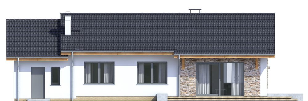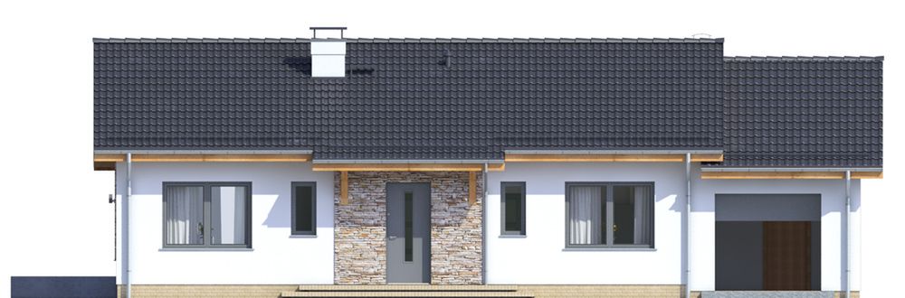 Graficzne opracowanie rzutów poglądowych widocznych na karcie projektu zostało wykonane przez Extradom.pl. Prezentowane przez Extradom.pl wizualizacje wykonane zostały przez autora projektu i należy poczytywać je jedynie za przykład i propozycję wykończenia, wizję architektoniczną autora projektu. Ostateczne wykończenie budynku może nastąpić na wiele sposobów. Szczegółowe rozwiązania zastosowane w oferowanej dokumentacji - w tym również ilość, lokalizacje i wygląd okien, drzwi, kominów - mogą w niewielkim stopniu różnić się od prezentowanej wizualizacji budynku.