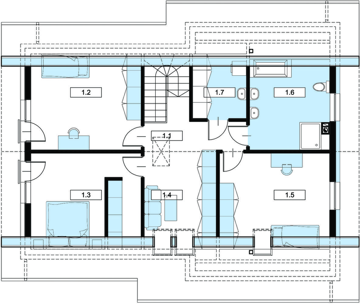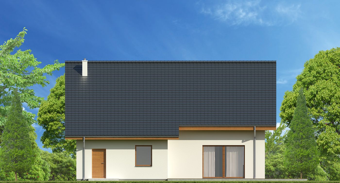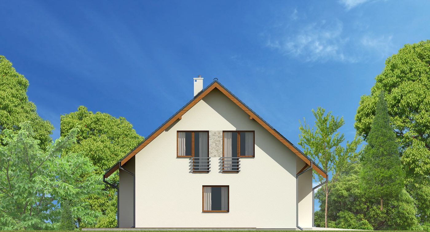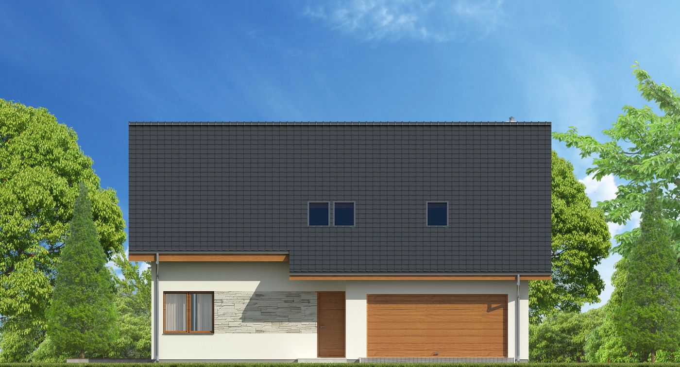Graficzne opracowanie rzutów poglądowych widocznych na karcie projektu zostało wykonane przez Extradom.pl. Prezentowane przez Extradom.pl wizualizacje wykonane zostały przez autora projektu i należy poczytywać je jedynie za przykład i propozycję wykończenia, wizję architektoniczną autora projektu. Ostateczne wykończenie budynku może nastąpić na wiele sposobów. Szczegółowe rozwiązania zastosowane w oferowanej dokumentacji - w tym również ilość, lokalizacje i wygląd okien, drzwi, kominów - mogą w niewielkim stopniu różnić się od prezentowanej wizualizacji budynku.