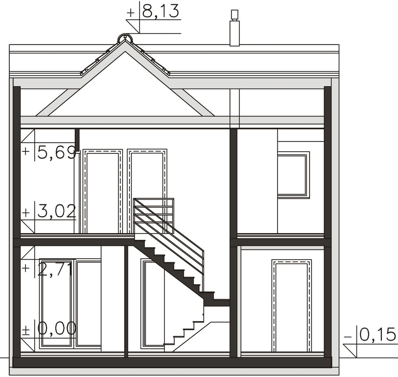 Fundamenty - płyta fundamentowa. Ściany zewnętrzne - Bloczek silikatowy 18 cm + styropian 20 cm. Strop - żelbetowy. Dach - tradycyjna więźba ciesielska. Ogrzewanie - c.o. grzejnikowe + c.w.u. - kocioł gazowy. Wentylacja - rekuperacja.
