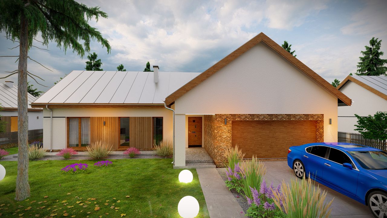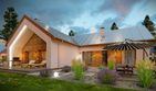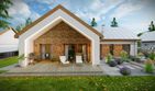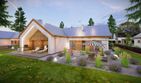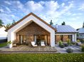 Graficzne opracowanie rzutów poglądowych widocznych na karcie projektu zostało wykonane przez Extradom.pl. Prezentowane przez Extradom.pl wizualizacje wykonane zostały przez autora projektu i należy poczytywać je jedynie za przykład i propozycję wykończenia, wizję architektoniczną autora projektu. Ostateczne wykończenie budynku może nastąpić na wiele sposobów. Szczegółowe rozwiązania zastosowane w oferowanej dokumentacji - w tym również ilość, lokalizacje i wygląd okien, drzwi, kominów - mogą w niewielkim stopniu różnić się od prezentowanej wizualizacji budynku.