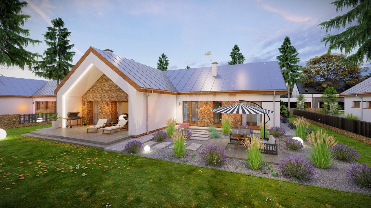Odkryj innowacyjne rozwiązanie, które łączy funkcjonalność nowoczesnego dachu i fotowoltaiki w jednym. Kupując projekt domu otrzymasz bezpłatny poradnik SunRoof – Dach solarny 2 w 1, dzięki któremu dowiesz się, jak w prosty sposób zaoszczędzić na energii i zadbać o środowisko. Zainspiruj się nowoczesnymi technologiami!