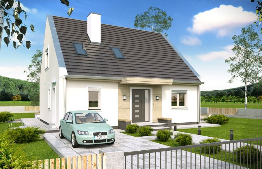 Graficzne opracowanie rzutów poglądowych widocznych na karcie projektu zostało wykonane przez Extradom.pl. Prezentowane przez Extradom.pl wizualizacje wykonane zostały przez autora projektu i należy poczytywać je jedynie za przykład i propozycję wykończenia, wizję architektoniczną autora projektu. Ostateczne wykończenie budynku może nastąpić na wiele sposobów. Szczegółowe rozwiązania zastosowane w oferowanej dokumentacji - w tym również ilość, lokalizacje i wygląd okien, drzwi, kominów - mogą w niewielkim stopniu różnić się od prezentowanej wizualizacji budynku.