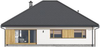 Graficzne opracowanie rzutów poglądowych widocznych na karcie projektu zostało wykonane przez Extradom.pl. Prezentowane przez Extradom.pl wizualizacje wykonane zostały przez autora projektu i należy poczytywać je jedynie za przykład i propozycję wykończenia, wizję architektoniczną autora projektu. Ostateczne wykończenie budynku może nastąpić na wiele sposobów. Szczegółowe rozwiązania zastosowane w oferowanej dokumentacji - w tym również ilość, lokalizacje i wygląd okien, drzwi, kominów - mogą w niewielkim stopniu różnić się od prezentowanej wizualizacji budynku.