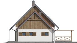 Graficzne opracowanie rzutów poglądowych widocznych na karcie projektu zostało wykonane przez Extradom.pl. Prezentowane przez Extradom.pl wizualizacje wykonane zostały przez autora projektu i należy poczytywać je jedynie za przykład i propozycję wykończenia, wizję architektoniczną autora projektu. Ostateczne wykończenie budynku może nastąpić na wiele sposobów. Szczegółowe rozwiązania zastosowane w oferowanej dokumentacji - w tym również ilość, lokalizacje i wygląd okien, drzwi, kominów - mogą w niewielkim stopniu różnić się od prezentowanej wizualizacji budynku.