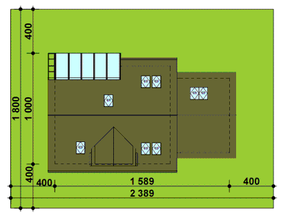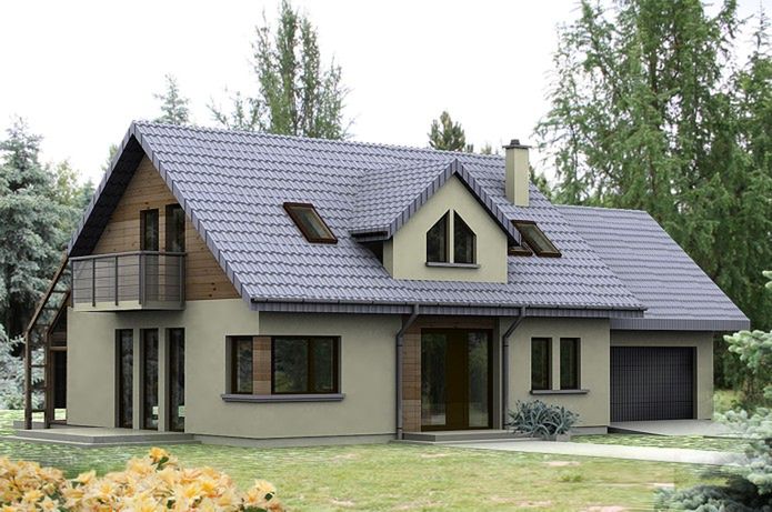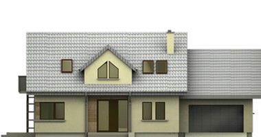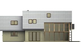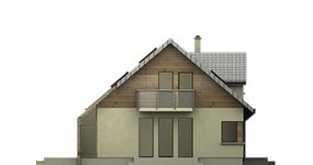Graficzne opracowanie rzutów poglądowych widocznych na karcie projektu zostało wykonane przez Extradom.pl. Prezentowane przez Extradom.pl wizualizacje wykonane zostały przez autora projektu i należy poczytywać je jedynie za przykład i propozycję wykończenia, wizję architektoniczną autora projektu. Ostateczne wykończenie budynku może nastąpić na wiele sposobów. Szczegółowe rozwiązania zastosowane w oferowanej dokumentacji - w tym również ilość, lokalizacje i wygląd okien, drzwi, kominów - mogą w niewielkim stopniu różnić się od prezentowanej wizualizacji budynku.