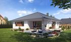 Graficzne opracowanie rzutów poglądowych widocznych na karcie projektu zostało wykonane przez Extradom.pl. Prezentowane przez Extradom.pl wizualizacje wykonane zostały przez autora projektu i należy poczytywać je jedynie za przykład i propozycję wykończenia, wizję architektoniczną autora projektu. Ostateczne wykończenie budynku może nastąpić na wiele sposobów. Szczegółowe rozwiązania zastosowane w oferowanej dokumentacji - w tym również ilość, lokalizacje i wygląd okien, drzwi, kominów - mogą w niewielkim stopniu różnić się od prezentowanej wizualizacji budynku.