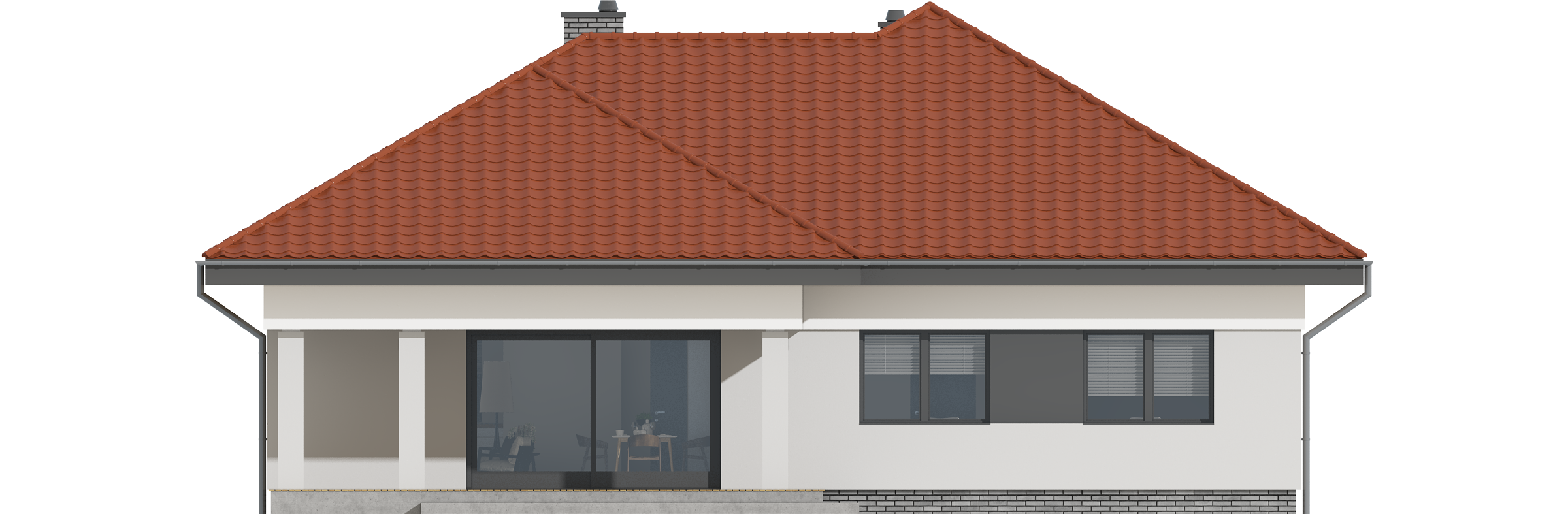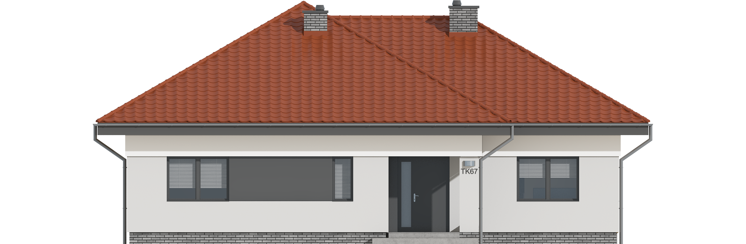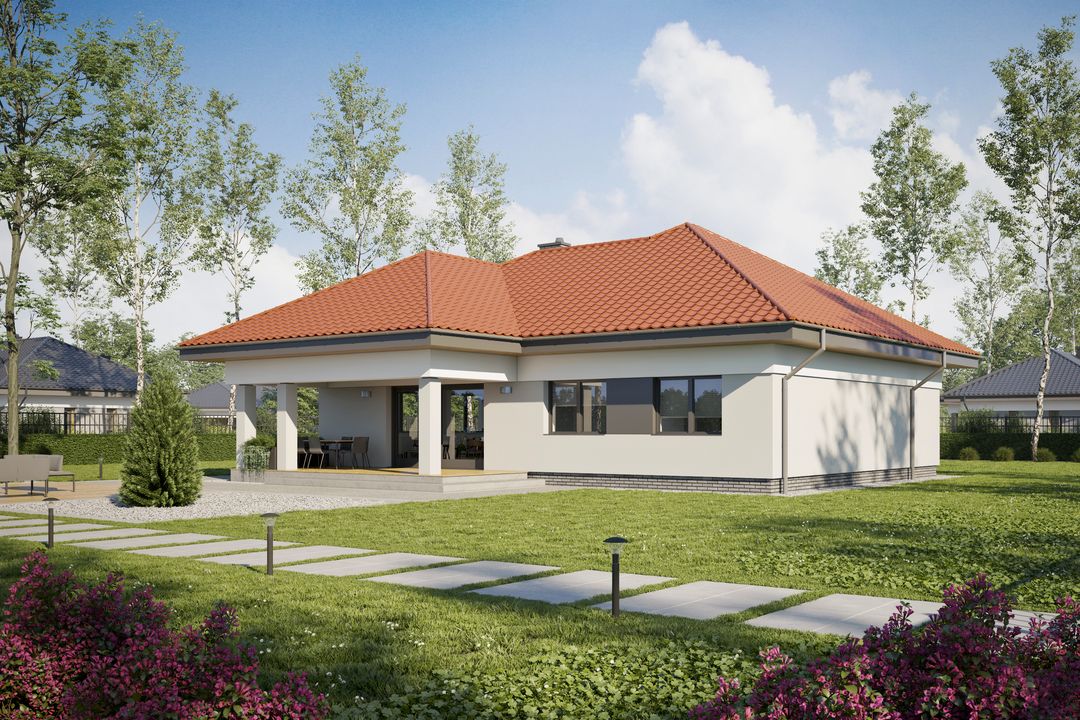 Graficzne opracowanie rzutów poglądowych widocznych na karcie projektu zostało wykonane przez Extradom.pl. Prezentowane przez Extradom.pl wizualizacje wykonane zostały przez autora projektu i należy poczytywać je jedynie za przykład i propozycję wykończenia, wizję architektoniczną autora projektu. Ostateczne wykończenie budynku może nastąpić na wiele sposobów. Szczegółowe rozwiązania zastosowane w oferowanej dokumentacji - w tym również ilość, lokalizacje i wygląd okien, drzwi, kominów - mogą w niewielkim stopniu różnić się od prezentowanej wizualizacji budynku.