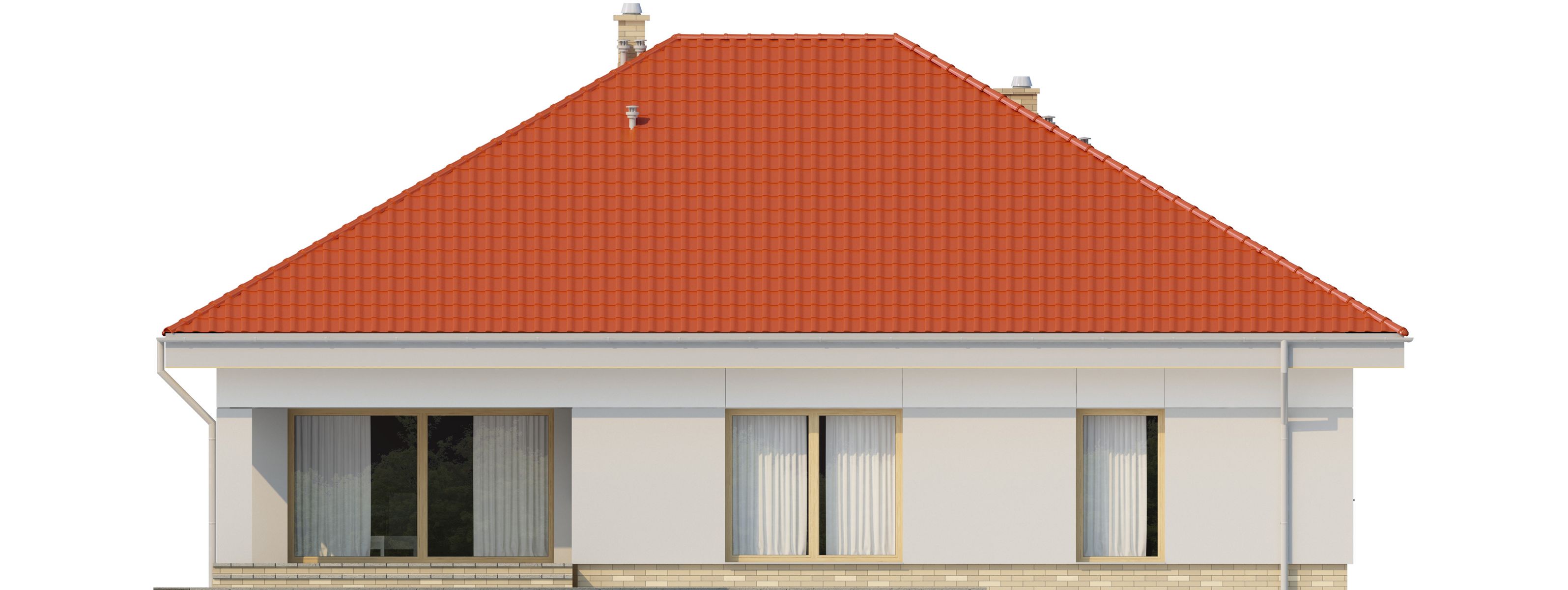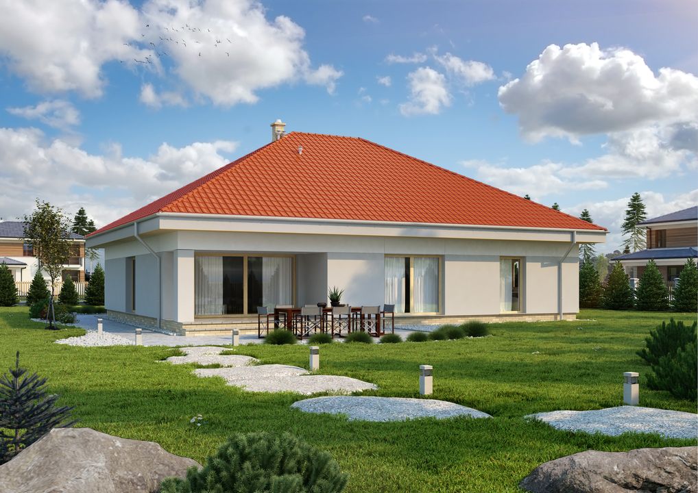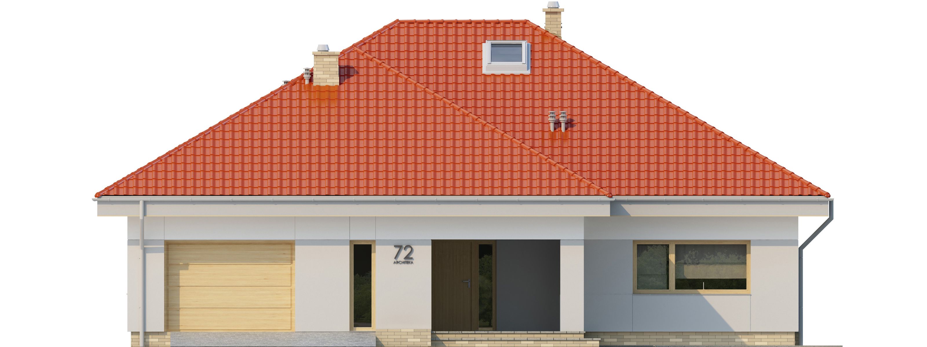 Graficzne opracowanie rzutów poglądowych widocznych na karcie projektu zostało wykonane przez Extradom.pl. Prezentowane przez Extradom.pl wizualizacje wykonane zostały przez autora projektu i należy poczytywać je jedynie za przykład i propozycję wykończenia, wizję architektoniczną autora projektu. Ostateczne wykończenie budynku może nastąpić na wiele sposobów. Szczegółowe rozwiązania zastosowane w oferowanej dokumentacji - w tym również ilość, lokalizacje i wygląd okien, drzwi, kominów - mogą w niewielkim stopniu różnić się od prezentowanej wizualizacji budynku.