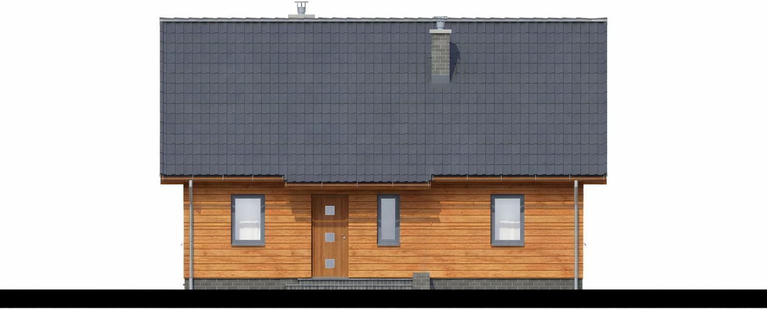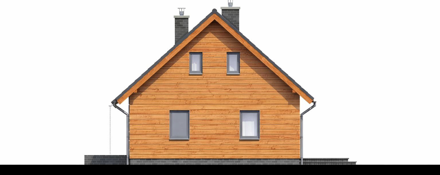 Graficzne opracowanie rzutów poglądowych widocznych na karcie projektu zostało wykonane przez Extradom.pl. Prezentowane przez Extradom.pl wizualizacje wykonane zostały przez autora projektu i należy poczytywać je jedynie za przykład i propozycję wykończenia, wizję architektoniczną autora projektu. Ostateczne wykończenie budynku może nastąpić na wiele sposobów. Szczegółowe rozwiązania zastosowane w oferowanej dokumentacji - w tym również ilość, lokalizacje i wygląd okien, drzwi, kominów - mogą w niewielkim stopniu różnić się od prezentowanej wizualizacji budynku.