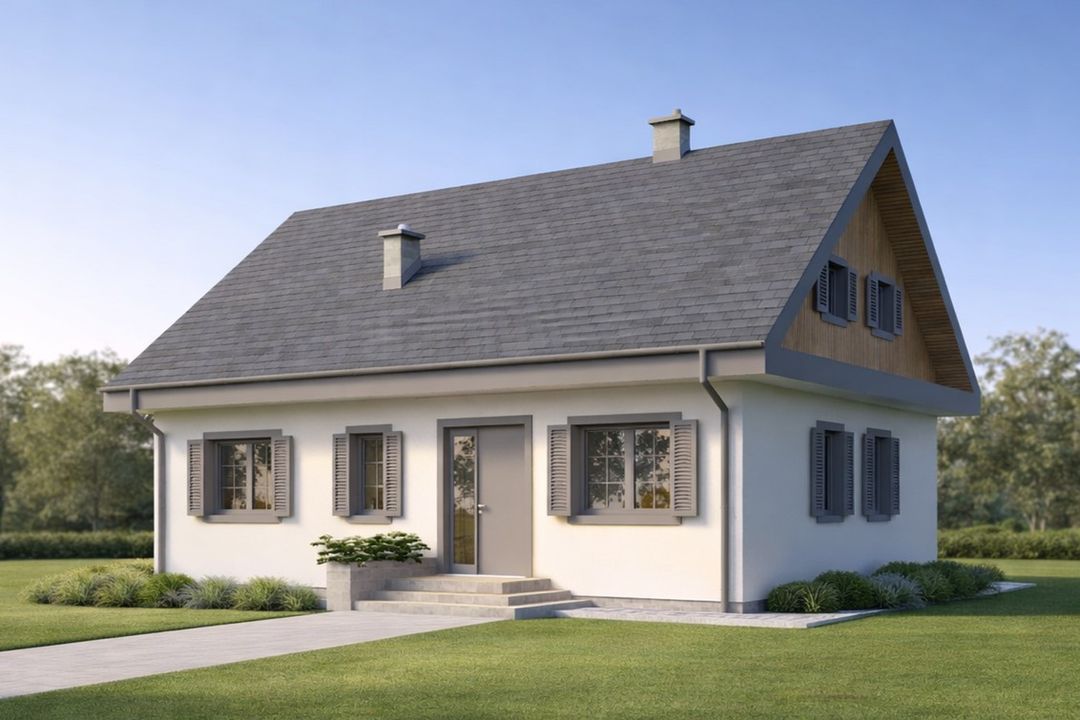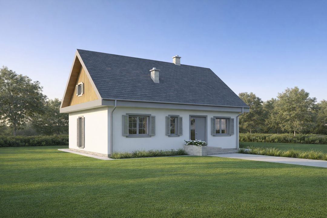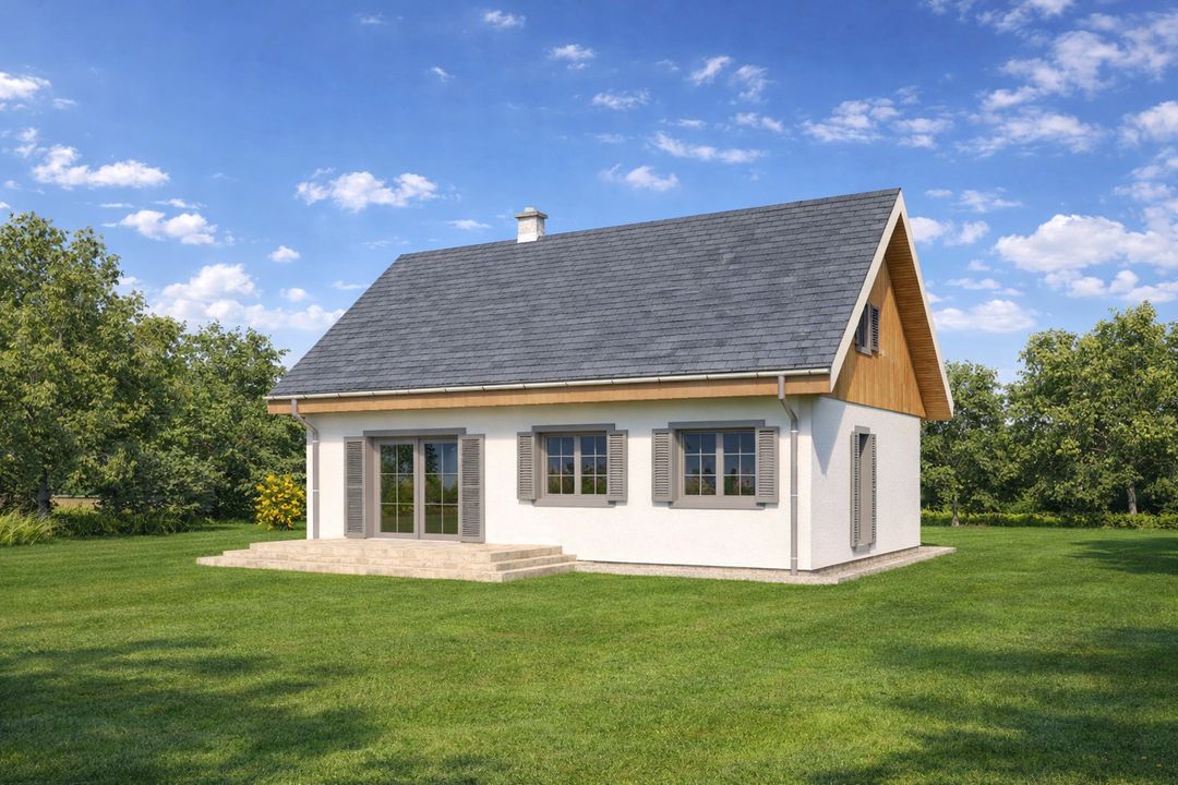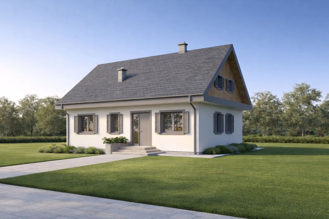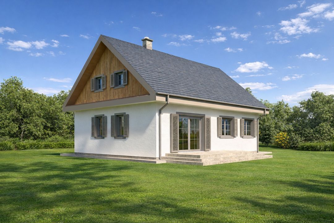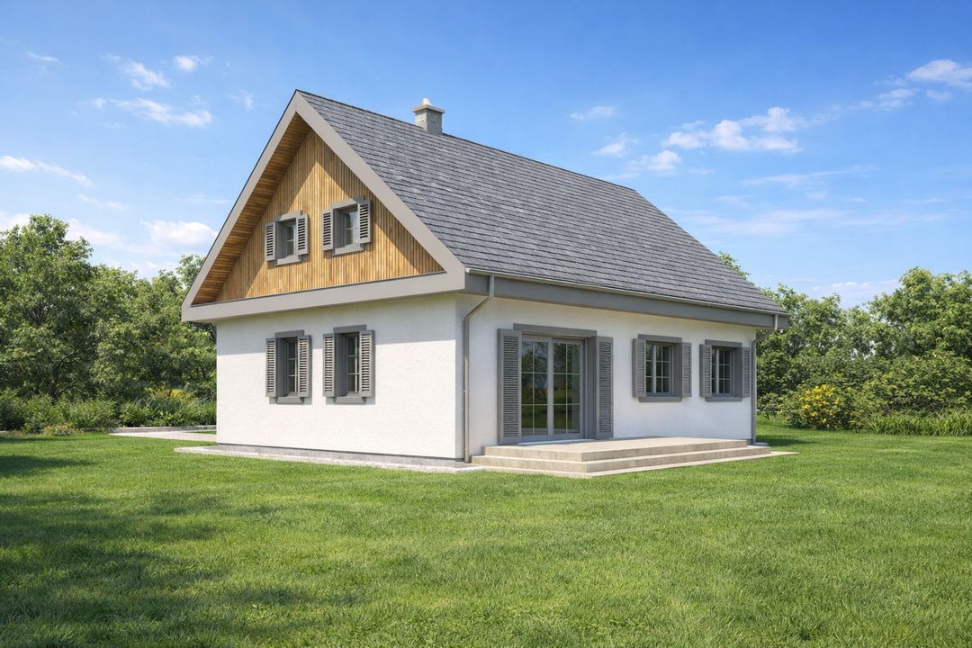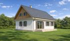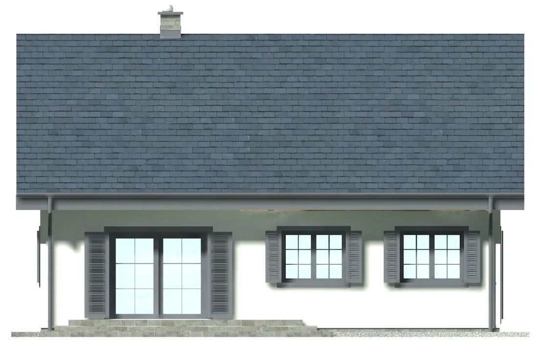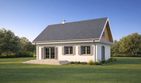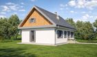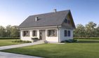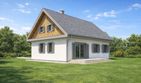 Graficzne opracowanie rzutów poglądowych widocznych na karcie projektu zostało wykonane przez Extradom.pl. Prezentowane przez Extradom.pl wizualizacje wykonane zostały przez autora projektu i należy poczytywać je jedynie za przykład i propozycję wykończenia, wizję architektoniczną autora projektu. Ostateczne wykończenie budynku może nastąpić na wiele sposobów. Szczegółowe rozwiązania zastosowane w oferowanej dokumentacji - w tym również ilość, lokalizacje i wygląd okien, drzwi, kominów - mogą w niewielkim stopniu różnić się od prezentowanej wizualizacji budynku.