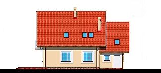 Graficzne opracowanie rzutów poglądowych widocznych na karcie projektu zostało wykonane przez Extradom.pl. Prezentowane przez Extradom.pl wizualizacje wykonane zostały przez autora projektu i należy poczytywać je jedynie za przykład i propozycję wykończenia, wizję architektoniczną autora projektu. Ostateczne wykończenie budynku może nastąpić na wiele sposobów. Szczegółowe rozwiązania zastosowane w oferowanej dokumentacji - w tym również ilość, lokalizacje i wygląd okien, drzwi, kominów - mogą w niewielkim stopniu różnić się od prezentowanej wizualizacji budynku.