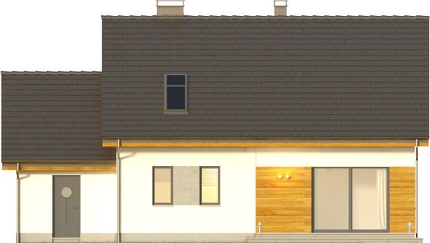 Graficzne opracowanie rzutów poglądowych widocznych na karcie projektu zostało wykonane przez Extradom.pl. Prezentowane przez Extradom.pl wizualizacje wykonane zostały przez autora projektu i należy poczytywać je jedynie za przykład i propozycję wykończenia, wizję architektoniczną autora projektu. Ostateczne wykończenie budynku może nastąpić na wiele sposobów. Szczegółowe rozwiązania zastosowane w oferowanej dokumentacji - w tym również ilość, lokalizacje i wygląd okien, drzwi, kominów - mogą w niewielkim stopniu różnić się od prezentowanej wizualizacji budynku.