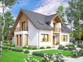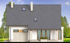 Graficzne opracowanie rzutów poglądowych widocznych na karcie projektu zostało wykonane przez Extradom.pl. Prezentowane przez Extradom.pl wizualizacje wykonane zostały przez autora projektu i należy poczytywać je jedynie za przykład i propozycję wykończenia, wizję architektoniczną autora projektu. Ostateczne wykończenie budynku może nastąpić na wiele sposobów. Szczegółowe rozwiązania zastosowane w oferowanej dokumentacji - w tym również ilość, lokalizacje i wygląd okien, drzwi, kominów - mogą w niewielkim stopniu różnić się od prezentowanej wizualizacji budynku.