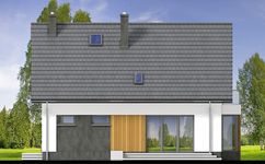 Graficzne opracowanie rzutów poglądowych widocznych na karcie projektu zostało wykonane przez Extradom.pl. Prezentowane przez Extradom.pl wizualizacje wykonane zostały przez autora projektu i należy poczytywać je jedynie za przykład i propozycję wykończenia, wizję architektoniczną autora projektu. Ostateczne wykończenie budynku może nastąpić na wiele sposobów. Szczegółowe rozwiązania zastosowane w oferowanej dokumentacji - w tym również ilość, lokalizacje i wygląd okien, drzwi, kominów - mogą w niewielkim stopniu różnić się od prezentowanej wizualizacji budynku.