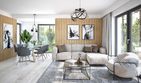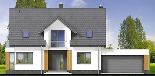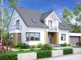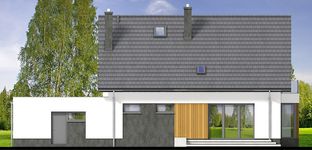 Graficzne opracowanie rzutów poglądowych widocznych na karcie projektu zostało wykonane przez Extradom.pl. Prezentowane przez Extradom.pl wizualizacje wykonane zostały przez autora projektu i należy poczytywać je jedynie za przykład i propozycję wykończenia, wizję architektoniczną autora projektu. Ostateczne wykończenie budynku może nastąpić na wiele sposobów. Szczegółowe rozwiązania zastosowane w oferowanej dokumentacji - w tym również ilość, lokalizacje i wygląd okien, drzwi, kominów - mogą w niewielkim stopniu różnić się od prezentowanej wizualizacji budynku.