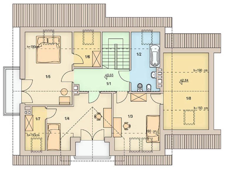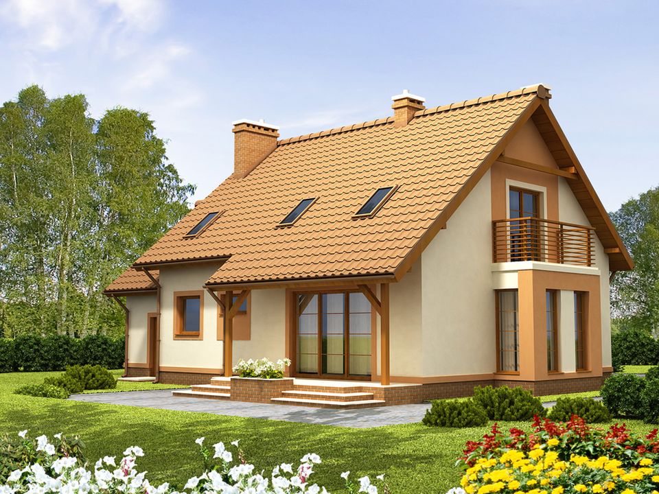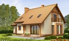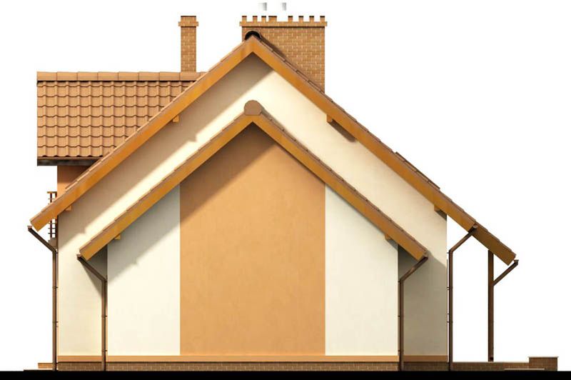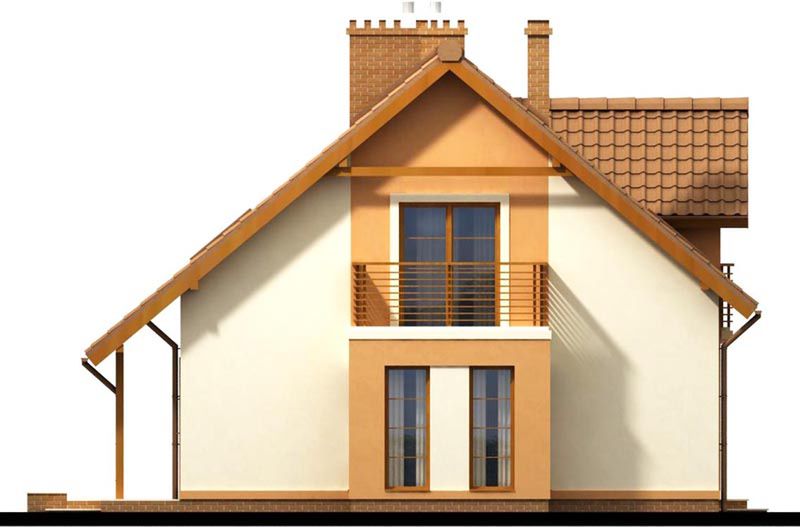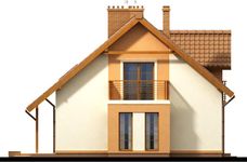 Projekt domu Tofi zaprojektowany z myślą o inwestorach posiadających średniej szerokości działkę. Bryła budynku posiada formę prostą, więc będzie się dobrze prezentował niezależnie od otoczenia. Na uwagę zasługuje ozdobny wykusz, nadający konstrukcji dodatkowego uroku. Projekt ma usytuowaną kalenicę równolegle do drogi, co jest bardzo istotne, gdy wymagają tego warunki zabudowy. Dom został zaprojektowany do zabudowy wolnostojącej. Autor projektu uwzględnił garaż jednostanowiskowy w linii budynku. Bryła budynku zwieńczona jest dachem dwuspadowym, dzięki czemu jest to tanie i proste rozwiązanie. Projekt Tofi to dom parterowy z poddaszem użytkowym, co sprawia, że jego powierzchnia jest wyraźnie podzielona na strefy: dzienną i nocną.Warto zwrócić uwagę na przestronną część dzienną. Tworzy ją między innymi kuchnia, która będzie idealnym rozwiązaniem zarówno dla tradycyjnych, jak i nowoczesnych gospodyń domowych. Uwzględniona w projekcie jadalnia połączona jest z pokojem dziennym, dzięki czemu wnętrze nabiera nowoczesnego charakteru. Usytuowany w salonie kominek nie tylko świetnie się prezentuje, ale także zapewni przyjemne ciepło w chłodniejsze dni. Większa rodzina z pewnością doceni fakt, iż na każdej kondygnacji znajduje się w pełni funkcjonalna łazienka. W domu znajdują się trzy wygodne sypialnie, co sprawia iż jest on doskonałym wyborem dla 4-6 osobowej rodziny. Aby umożliwić w pełni wykorzystanie powierzchni pod skosami dachu, zaprojektowano wysoką ścianę kolankową. Zaprojektowano również gabinet, który może służyć jako pokój gościnny, oraz dodatkową łazienkę, dzięki czemu poddasze pozostanie strefą wyłącznie dla domowników. W utrzymaniu porządku z pewnością pomoże nam przewidziane w projekcie pomieszczenie gospodarcze. Taras jest idealnym miejscem do organizowania rodzinnych spotkań i chwili relaksu. Zalecana przez architekta technologia murowana zapewnia trwałość i solidność konstrukcji. W jego bryle widoczne są rozwiązania nawiązujące do stylu tradycyjnego, dzięki czemu idealnie wpisze się w dowolny krajobraz. Prosta bryła i nieskomplikowana konstrukcja, zdecydowanie ułatwią i przyspieszą realizację. Aby zapewnić niskie koszty eksploatacji i nie zwiększać kosztów budowy, w projekcie zastosowano rozwiązania energooszczędne na poziomie ekonomicznie uzasadnionym.
